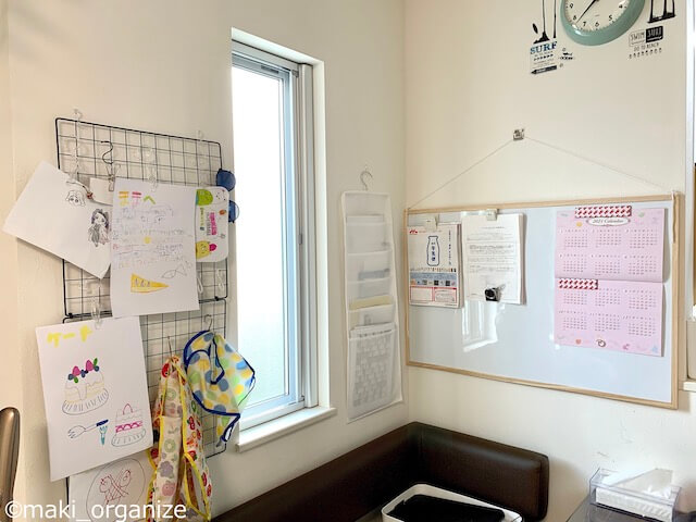 サイゾーウーマン暮らし住まい【ダイソー】220円「吊り下げシャツ収納」 暮らし 【ダイソー】収納アイデア 【ダイソー】220円「吊り下げシャツ収納」、A4書類がすっきり片付く! プロのスゴい使用実例 2024/06/14 13:00 伊藤まき(収納ライター) ダイソー 整理収納アドバイザー・伊藤まきさんがサイゾーウーマンで連載中の「『お片付けSOS』相談!」。今回はダイソーの「吊り下げシャツ収納」を紹介します。 ※2024年2月10日公開記事を再編集しています。 目次 ・【ダイソー】220円「吊り下げシャツ収納」 ・【ダイソー】220円「吊り下げシャツ収納」使用例 【ダイソー】220円「吊り下げシャツ収納」 吊り下げシャツ収納(C)maki_organize お子さんがいて「学校関係のプリント」のあるお宅に片付けへ訪問するときは、必ず、ダイソーの「吊り下げシャツ収納」を持参します。5つのポケットにA4用紙がすっきり収まるので、提出用紙、確認用紙を忘れずに管理できます。 例えば、パパの書類、ママの書類、上の子の書類、下の子の書類、その他の通知の5種類を分けることが可能。全てのプリントを、ざっくり箱に入れるよりもピンポイントで出し入れできます。 【ダイソー】220円「吊り下げシャツ収納」使用例 封筒から外して、クリアファイルに差し込むだけ!(C)maki_organize お子さんのいるモニターさん宅での使用例です。 ホワイトボード横に、ダイソーの「吊り下げシャツ収納」を設置。封筒から出したプリントを種類別に保管します。 ダイソーの「吊り下げシャツ収納」「ワイヤーネット」、 ニトリの「ホワイトボード」の3種類を使って、リビングに散らかるプリントを1カ所にまとめました。 全て100均の「クロス用ピンフック」で吊り下げることができるので、壁に大きな穴を残す心配もありません。しかも、全部で約2,000円の予算です。 プリントの種類別に仕分けます(C)maki_organize 書類の確認をする「いつもの場所」から、手が届く範囲に「プリントの収納」がそろうと簡単です。最近は、デジタル管理もおすすめですが学校プリントやお金に関する資料は、まだまだペーパーレスではなく実物が必要。家族みんなが自分で分別できるように「簡単な仕組み」にすることも大切です。 こんなお悩みにおすすめ ①プリントの仕分け、管理ができない ダイソー収納アイデア&アイテム人気記事10(※画像クリックで記事に飛びます) ダイソー「蓋付き収納 BOX」商品番号:4549131634921ダイソーの「蓋付き収納 BOX」。大型クローゼットや押入れがない家でも機能的に収納ができる、便利なアイテムです。ジッパー付きの軽量サイズ(182g/ライター調べ)だから、高い場所に置いても片手で降ろせます。価格は330円(税込)ですが、無印良品の「ポリエステル綿麻混・ソフトボックス」(1,490円/同)の5分の1。 ダイソー「強力吸盤フック」「ミニ突っ張り棒」ダイソーの「強力吸盤フック」耐荷5kg(2P)と耐荷2kg(4P)、そしてミニ突っ張り棒(2P)。この2グッズがあるだけで、家中の困ったコトにかなり役立ちます。この強力吸盤フックは、ツルツルした面(タイル、ガラス、琺瑯など)に適しているので、トイレに使うのも便利。生理用品を入れたポーチや、流せるトイレブラシを吊り下げます。ミニ突っ張り棒は、床下から20〜30cmの場所がベスト。 ダイソー「ホッピングバッグ」商品番号:4549131306484ダイソーの「ホッピングバッグ」なら、使わない時は畳めて「かさばらない」ので、狭い空間を奪いません。イレギュラーなモノが増えた時も、サッと広げるだけで便利な収納ボックスへと変わります。ブランケットや羽織の収納ボックスとして。 あちこちに脱ぎ散らかした衣類も、簡単に回収できます。キッチンペーパーやトイレットペーパーなど、収納棚に入りきれなかったストック品もまとまります。ペットシーツやおむつの在庫入れなど、紙モノに最適 ダイソー「超強力マグネット」商品番号:4549131230475マルチに使える、ダイソー「超強力マグネット」。一般的な磁石に比べて、一度貼り付くと剥がすのも困難な磁力を誇ります。ティッシュケースにマグネットをつけたり、リモコンにつけたりすれば、簡単に壁面収納がかないます。このマグネットを使って自作したティッシュケースは、山崎実業のマグネット付きティッシュケースにそっくりなのに、7分の1の価格(制作費400円)で済みました。その作り方や、100均マグネットを使った、さまざまな壁面収納術は記事をチェック! ダイソー「貼ってはがせるシートフック」
