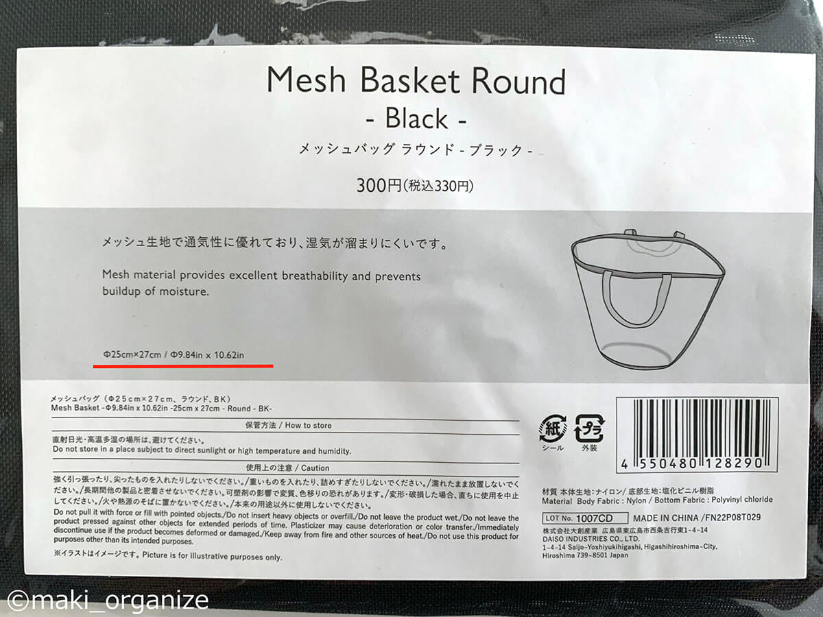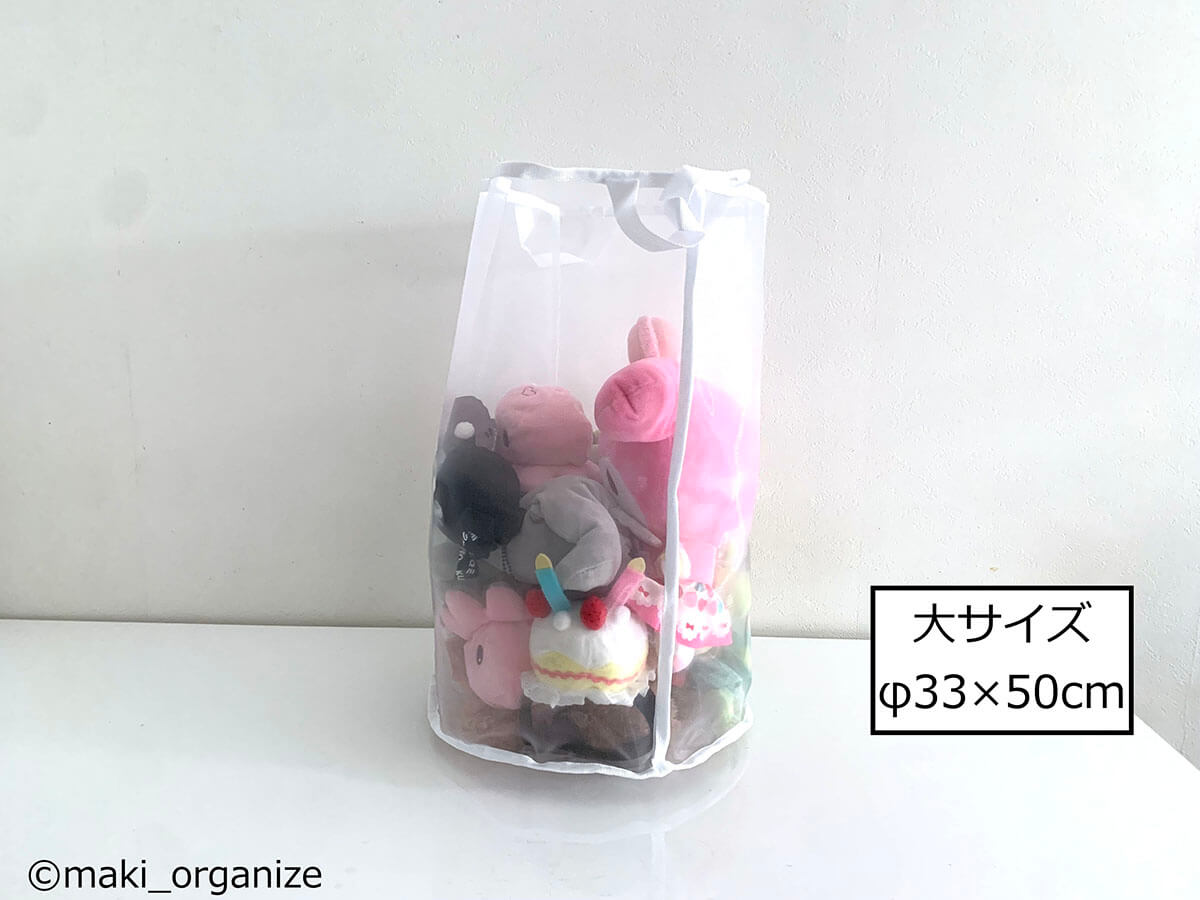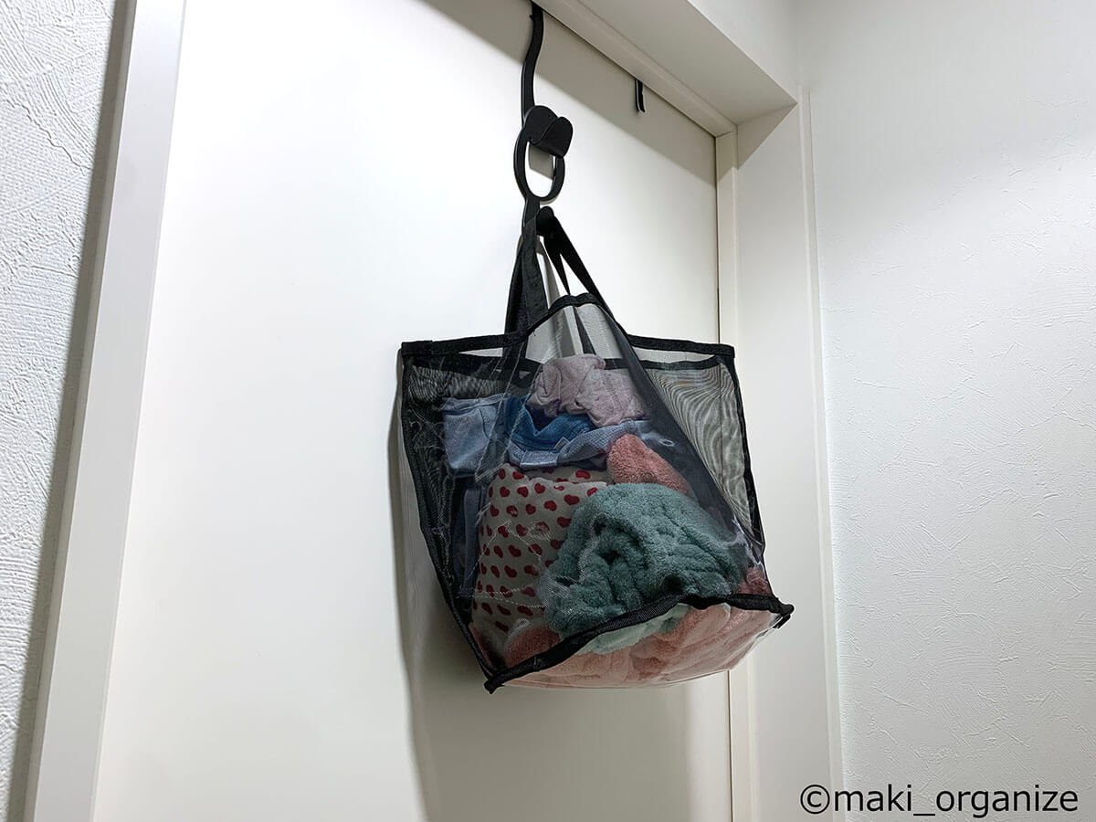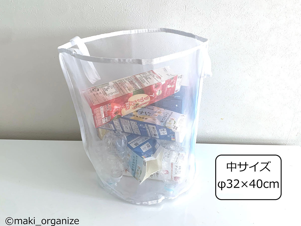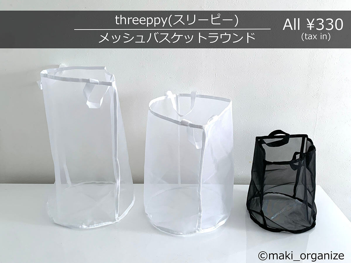 サイゾーウーマン暮らし住まい【330円】メッシュバッグで「空中収納」 暮らし [連載]女たちの「煩悩部屋」ビフォーアフター 【ダイソー】300円ブランド「メッシュバスケット」は吊るして使って! プロの空中収納実例は? 2024/06/05 17:00 伊藤まき(収納ライター) 「汚部屋」ビフォーアフター 整理収納アドバイザー1級で収納ライターの伊藤まきさんが、家の中の “片付け”に関する悩みを“安く・簡単”に解決するコツを紹介します! 目次 ・【スリーピー】「メッシュバスケット ラウンド」 330円(税込) ・【スリーピー】「メッシュバスケット ラウンド」サイズと選び方 ・【スリーピー】「メッシュバスケット ラウンド」(大) ・【スリーピー】「メッシュバスケット ラウンド」(中) ・【スリーピー】「メッシュバスケット ラウンド」(小) ・「メッシュバスケット」の魅力1・2 ・【まとめ】メッシュバスケットは「スリーピー」が正解! 【スリーピー】「メッシュバスケット ラウンド」 330円(税込) 使うときは「自立する」から、出し入れも快適!(C)maki_organize 今回はダイソーの300円ブランド「スリーピー」で購入できるメッシュバスケットをご紹介します。ランドリーバスケットに比べるとコンパクトなので、狭いスペースでも使用OK! さらに吊るして「空中収納」できる点もメリットです。 ソファ上に積もる洗濯物や置き場が決まらないパジャマなど「床に直置きしたくない」モノの収納にぴったり! 実例でご紹介していきます。 かさばらないスリムなサイズ感が魅力!(C)maki_organize こちらがスリーピーの「メッシュバスケット ラウンド」 330円(税込)です。カラーは白と黒の2色展開。大中小の3サイズから選べます。 【選ぶ際の注意点】表記が小さいので、サイズをしっかり確認! イラストも描かれていますが、サイズ感がわかりにくい(C)maki_organize ラベルがシンプルなため、サイズの記載部分が小さくてわかりにくいです。しっかり確認すると同時に、あらかじめ以下の3種類があることを知っておくと良いでしょう。 【スリーピー】「メッシュバスケット ラウンド」3種類のサイズ (C)maki_organize 写真左から、大・中・小です。筆者宅では、それぞれ「ぬいぐるみ入れ」「乾いた洗濯物入れ」「パジャマ入れ」として愛用中。「出しっぱなし収納」でも、スッキリとコンパクトにまとまります。 以下からはサイズ別に使い方の実例をご紹介します。 【スリーピー】「メッシュバスケット ラウンド」φ33×50cm(大) メッシュ素材だから生地が伸びる JANコード(4550480128313)(C)maki_organize いちばん大きなサイズです。筆者宅ではぬいぐるみ入れに使っていますが、ランドリーバスケットとして乾いた洗濯物の収納におすすめ! また、毛布や布団など「かさばる大型品」にも向いています。 【スリーピー】「メッシュバスケット ラウンド」φ32×40cm(中) 旅先でのランドリーバッグにも◎ JANコード(4550480128337)(C)maki_organize 中サイズは、紙パックやペットボトルなどの保管に最適です。また、持ち手がついているので「外出時に持ち出せるアイテム入れ」としても活躍! 夏の水遊びグッズや遊具を入れてまとめておくと便利です。 【スリーピー】「メッシュバスケット ラウンド」φ25×27cm(小) 軽いモノを吊るす収納に JANコード(4550480128290)(C)maki_organize 小サイズは、トートバッグに似たサイズ感。重くなりすぎないので「吊るす収納」に向いています。玄関まわりのエコバッグや帽子などの小物を入れたり、洗面所のドアフックに引っ掛けて「パジャマ入れ」として活用するのも良いですね。 【メッシュバスケットの魅力1】「フック」に引っ掛けて空中収納できる! 収納力が足りないと感じたら、家具を増やすより「空中収納」がおすすめ(C)maki_organize S字フックやドアフックなどあらゆる「フック」に引っ掛けて使える点が魅力。紙袋やレジ袋へ入れるより、中身がわかりやすいところも◎です。ただし、吊るして使うなら「布類・紙袋・トイレットペーパー・お菓子」など、軽めのモノにしておくのがおすすめです。 【メッシュバスケットの魅力2】メッシュ素材だから、通気性も良く衛生的 バスケットの底面のみ、ビニール製です(C)maki_organize ナイロン製のメッシュ生地なので、汚れても洗濯が可能です。通気性も良いので、乾きにくい形状のモノを入れて日干しするという使い方も! ただし、尖ったモノや重いモノはバスケットが破損してしまう可能性があるので、注意するようにしてください。 【まとめ】メッシュバスケットは「スリーピー」が正解! 左は過去記事で紹介した「ホッピングバスケット」(C)maki_organize 以前は100均の「ホッピングバスケット」を使っていましたが、持ち手が切れやすいという欠点から、スリーピー「メッシュバスケット ラウンド」に移行しました。 実際に1年ほど使用していますが、持ち手も丈夫なので、現時点ではいちばんおすすめできるアイテムです。 【イケア】199円「蓋付き段ボール」はアレにぴったり! プロが4種の収納BOX