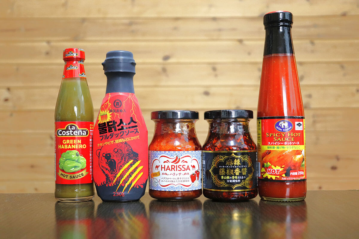 サイゾーウーマン暮らし食べ物 【業スー】旨辛調味料5種を食べ比べ 暮らし 節約俳優・布川隼汰の食べ比べガチレビュー 【業務スーパー】マニアが「リピートはナシ」と断言する、旨辛系調味料は? 2024/06/06 18:00 布川隼汰(俳優) 節約俳優・布川隼汰の食べ比べガチレビュー ――業務スーパーマニアで節約大好き俳優・布川隼汰が、巷の人気商品をガチ食べ比べ! (C)布川隼汰 世界にはさまざまな食文化や調味料が存在しています。そこで、今回は業スーで買える各国の「旨辛系調味料」5種をピックアップしてレビュー! 輸入品を取り揃えている業務スーパーの本気、とくとご覧あれ!! 目次 ・中国「麻辣藤椒香醤」 ・チュニジア「ハリッサ」 ・タイ「スパイシーホットソース」 ・韓国「ブルダックソース」 ・メキシコ「グリーンハバネロホットソース」 ・業スー「旨辛系調味料」食べ比べ総評 業スー「旨辛系調味料」食べ比べ 中国「麻辣藤椒香醤(マーラータンジャオシャンジャン) 」180g 298円 麻辣藤椒香醤(C)布川隼汰 【辛さ】:★☆☆☆☆ ほとんどと言っていいほど辛くない。ピリッともしないので、辛党には物足りないと思います! 【甘さ】:★★★☆☆ 少し甘め。あまり甘い原料は入っていないので、ブドウ糖によるものかもしれません。 【酸味】:★☆☆☆☆ 酸味はまったくなし! 【旨味】:★★★★★ フライドガーリックの風味がほとんどを占めています。八角や青山椒などの中華スパイスによる風味も相まって、辛さを無視すればとてもおいしい調味料です! 麻辣藤椒香醤(C)布川隼汰 《感想》 全体的に食べるラー油に近い。スパイス感もあるので「ご飯にかける」とまではいきませんが、料理のアクセントとしてはなかなかいいかも。ただ、値段も含めてリピートはナシかな。 業スー「旨辛系調味料」食べ比べ チュニジア「ハリッサ」180g 298円 ハリッサ(C)布川隼汰 【辛さ】:★★★☆☆ 後から喉元にピリピリくる辛さ。気づくと汗がじんわりと出ている、ステルス的な辛さの隠れ具合です。 【甘さ】:★★☆☆☆ ほんのり感じる程度。全体のバランスをとるため砂糖で調整しているという感じなので、存在感はないです! 【酸味】:★★★☆☆ 醸造酢による酸味があります。トマトは入っていませんが、感覚的にはトマトソースのすっぱさに近い。甘さよりも酸味の主張が強いか。 【旨味】:★★★★☆ 味のベースは野菜(パプリカ・にんにく)なので野菜のさりげない旨味が凝縮されている感じ。そしてなによりクミンとコリアンダーのバランスが素晴らしい! スパイスが協調しながらも、嫌な感じはしな絶妙な風味にまとまっています! ハリッサ(C)布川隼汰 《感想》 チュニジアというあまり馴染みのない国の調味料を、日本人の口に合うような形でうまく商品化しています。どんな料理にでも使える、なかなか使い勝手のいいヤツ! 同じ量で同じ値段なら、麻辣藤椒香醤よりもこちらを買うかな。 業スー「旨辛系調味料」食べ比べ タイ「スパイシーホットソース」280g 158円 スパイシーホットソース(C)布川隼汰 【辛さ】:★★☆☆☆ 感覚を研ぎ澄ませば、ちょっと辛いかな~くらいの感じです。商品名は変えたほうがいいかも……(笑)。 【甘さ】:★★★★★ かなり甘めです! 結構「砂糖!」という甘さなので、料理に使う際は注意したほうがいいかも。 【酸味】:★★★☆☆ 適度な酸味。バランスがいいので特別気にするほどではないです。 【旨味】:★★★☆☆ 原材料が「唐辛子・砂糖・にんにく・食塩」というシンプルなつくりなので、複雑な旨味や深みはありません! 唐辛子とにんにくの味をダイレクトに感じられるので、シンプルな料理にかけるソースとしては合うかも! スパイシーホットソース(C)布川隼汰 《感想》 全体的な印象は「甘い」。チリソースとほぼ変わりないですね。生春巻きや冷奴などにかけるといいと思います。値段はなかなかに安いので、甘めのソースを求めてる方はチャレンジしてもいいかも! 業スー「旨辛系調味料」食べ比べ 韓国「ブルダックソース」230g 238円 ブルダックソース(C)布川隼汰 【辛さ】:★★★★★ めちゃ辛い!! 舌にも喉にも来る辛さで、一瞬で汗が噴き出ます。辛いというか痛いに近い(笑)。 【甘さ】:★★★★★ 辛いと同時にかなり甘い! 甘辛の最上級みたいなソースです。 【酸味】:★☆☆☆☆ 酸味はまったくありません。 【旨味】:★★★☆☆ 辛さと甘さが強すぎて、あまり旨味を感じる暇がないのですが、甘い分コクがある。カレー粉も少し入っているのでスパイス感も存在するのですが、いかんせん辛さが勝ってしまってあまり感じる時間がありません。 ブルダックソース(C)布川隼汰 《感想》 ラベルのインパクトどおりの商品でした。激辛好きは買って損はないと思います。が、辛さと同時に甘さもついてくるので、使い方は少し難しいかも。料理に「ちょいがけ」が一番無難な使い方! 業スー「旨辛系調味料」食べ比べ メキシコ「グリーンハバネロホットソース」144ml 158円 