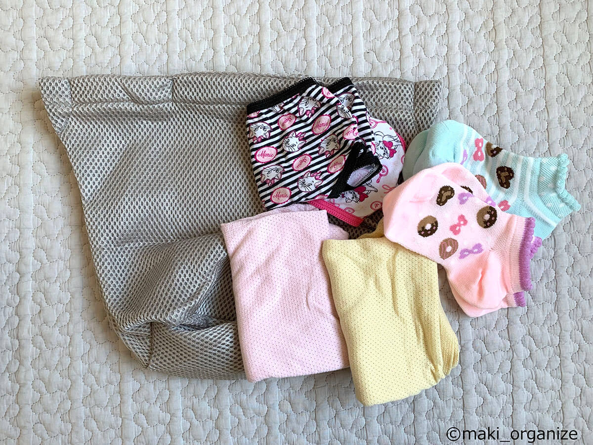 サイゾーウーマン暮らし住まい【ダイソー】洗濯ネットは持ち手つきが◎ 暮らし [連載]女たちの「煩悩部屋」ビフォーアフター 【ダイソー】330円「洗濯ネット」、持ち手付きだから外出に◎! プロの活用アイデア集 2024/06/12 17:00 伊藤まき(収納ライター) 「汚部屋」ビフォーアフター 整理収納アドバイザー1級で収納ライターの伊藤まきさんが、家の中の “片付け”に関する悩みを“安く・簡単”に解決するコツを紹介します! 目次 ・「持ち手付き洗濯ネット」で外出準備をラクに ・【ダイソー】「メッシュバッグ型 洗濯ネット」330円(税込) ・【スタンダードプロダクツ】「洗濯ネット トート型」330円(税込) ・【ダイソー】「クッション洗濯ネット」110円(税込) ・【セリア】「そのまま洗える ランドリーネットバッグ」110円(税込) ・【ダイソー・セリアを比較】ダイソーはファスナーカバー付き ・【まとめ】外出の支度と片付けは「洗濯ネット」が正解! 「持ち手付き洗濯ネット」で外出準備をラクに (C)maki_organize 今回は、ダイソー・スタンダードプロダクツ・セリアで購入できる「持ち手付き洗濯ネット」をご紹介します。衣類や下着の収納に便利かつ、洗濯機で「そのまま洗える」点がメリット! ジムやプールなど外出時の準備もラクになります。 次からはおすすめ3品の特徴と使い方の実例をご紹介します。 【ダイソー】「メッシュバッグ型 洗濯ネット」330円(税込) JANコード:4550480228259(C)maki_organize ダイソー「メッシュバッグ型 洗濯ネット」330円(税込)です。メッシュ素材なので通気性が良く衛生的! 外出先で着用した衣類をそのまま洗濯機で洗うことができます。 プールグッズやトレーニングウェア入れにぴったり! (C)maki_organize 中身が見えるのでプールグッズやジムで着るトレーニングウェアなど、衣類を用途別にまとめておくと便利です。必要なときにサッと持ち出せるので、準備の時間が短縮されます。 【スタンダードプロダクツ】「洗濯ネット トート型」330円(税込) JANコード:4979909970942(C)maki_organize スタンダードプロダクツの「洗濯ネット トート型 マチ付」 330円(税込)です。持ち手部分が長く、型がしっかりしているのが特徴。持ち運びに便利な「トートバッグ」タイプです。 こちらも前述のダイソーバッグと同様の使い方が可能。ダイソーは黒、スタンダードプロダクツは白なので、家族ごとに色分けして使っても良いですね。 旅先での「かさばらない」ランドリーバッグにも! 写真右、ダイソー(黒)のほうがやわらかいのでバッグインバッグ向き(C)maki_organize 折りたたむとコンパクトになるので、旅先での「ランドリーバッグ」にも向いています。ともに、家に帰ったらバッグから出して「そのまま洗える」簡単さが魅力! 洗濯物が乾いたら「そのまま収納」できるので、次の準備がラクになります。 【ダイソー】「クッション洗濯ネット」110円(税込) JANコード:4979909962121(ダイソー)(C)maki_organize 左のふたつが「クッション洗濯ネット(マチ付バッグ型、ロゴ)」110円(税込)、右がセリア「そのまま洗える ランドリーネットバッグ」110円(税込)です。中身が見えにくく、生地が傷みにくいクッション素材なので「下着入れ」として最適。筆者は旅先の温泉などで、着替えや下着をまとめるバッグとして活用しています。 カラーやサイズで大人用(男女)と子供用の区別がわかりやすくなるよう使い分けるのも良いですね。 【セリア】「そのまま洗える ランドリーネットバッグ」110円(税込) 子ども用の下着セットをまとめました JANコード:4947879014348(セリア)(C)maki_organize 【ダイソーとセリアを比較】ダイソーはファスナーカバー付き! (C)maki_organize ダイソーとセリアを比較してみました。ダイソーのほうがファスナーカバーつきなので、衣類を傷めにくく安心して使えます。 【まとめ】外出の支度と片付けは「洗濯ネット」を使うとラクで便利! (C)maki_organize 外出の支度と片付けが今よりずっと簡単になる「持ち手付き洗濯ネットメッシュバッグ」はいかがでしたか? 以下の過去記事でも洗濯ネットでの「衣類の仕分け」をご紹介しているので、ぜひ参考にしてみてください。 キャンドゥ・ダイソー・IKEAの“買い”アイテム6選! 収納のプロがオススメ「洗濯ネット」活用術 整理収納アドバイザー1級で収納ライターの伊藤まきが、家の中の “片付かない”ちょっとした悩みを“簡単で安く”解決するコツを提案します! 100均の収納グッズを紹介する当...サイゾーウーマン2020.11.30 【IKEA(イケア)】199円のプロ絶賛のおすすめ品! 汚れたら洗える“中が見える収納袋” 整理収納アドバイザー・伊藤まきさんがサイゾーウーマンで連載中の「『お片付けSOS』相談!」。片付けに役立つアイテムや収納実例などを紹介していますが、これまでに取り上...サイゾーウーマン2023.10.28 伊藤まき(収納ライター) 収納ライター・兼・整理収納アドバイザー1級。クリンネスト2級。おがくず工場に生まれ、ホテル清掃員、国鉄系レストランの厨房、内装会社、