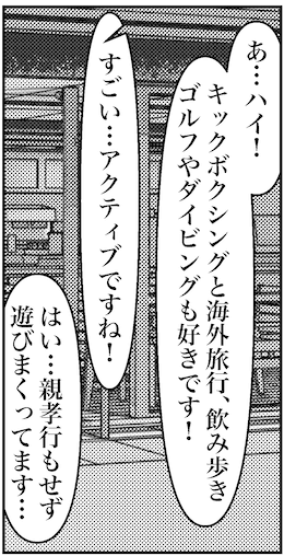 サイゾーウーマンカルチャーマンガアラフォー婚活、お見合い後お断りしたワケ カルチャー まんが『オバサンと言われても結婚したい!』340話 【アラフォー婚活ルポ】お見合い後、初めて自分からお断りしたワケ 2024/07/17 13:30 白戸ミフル(マンガ家) オバサンと言われても結婚したい! お見合いは平和に終わった 次のページ 前のページ123次のページ 関連記事 【アラフォー婚活ルポ】「俺って歳のわりになかなかじゃない?」45歳イケメンの残念ポイント【アラフォー婚活ルポ】「ウチに来ませんか?」終電間近、23歳男子の誘い【アラフォー婚活ルポ】「結婚しよう!」無職、26歳男子の言葉に絶句【アラフォー婚活ルポ】39歳でフラれた私は「鬼」になった! 恋愛してやる!! 【アラフォー婚活ルポ】結婚相談所の紹介は○○……アラフォー3人、2021年の婚活を振り返る! その他の作品を読む