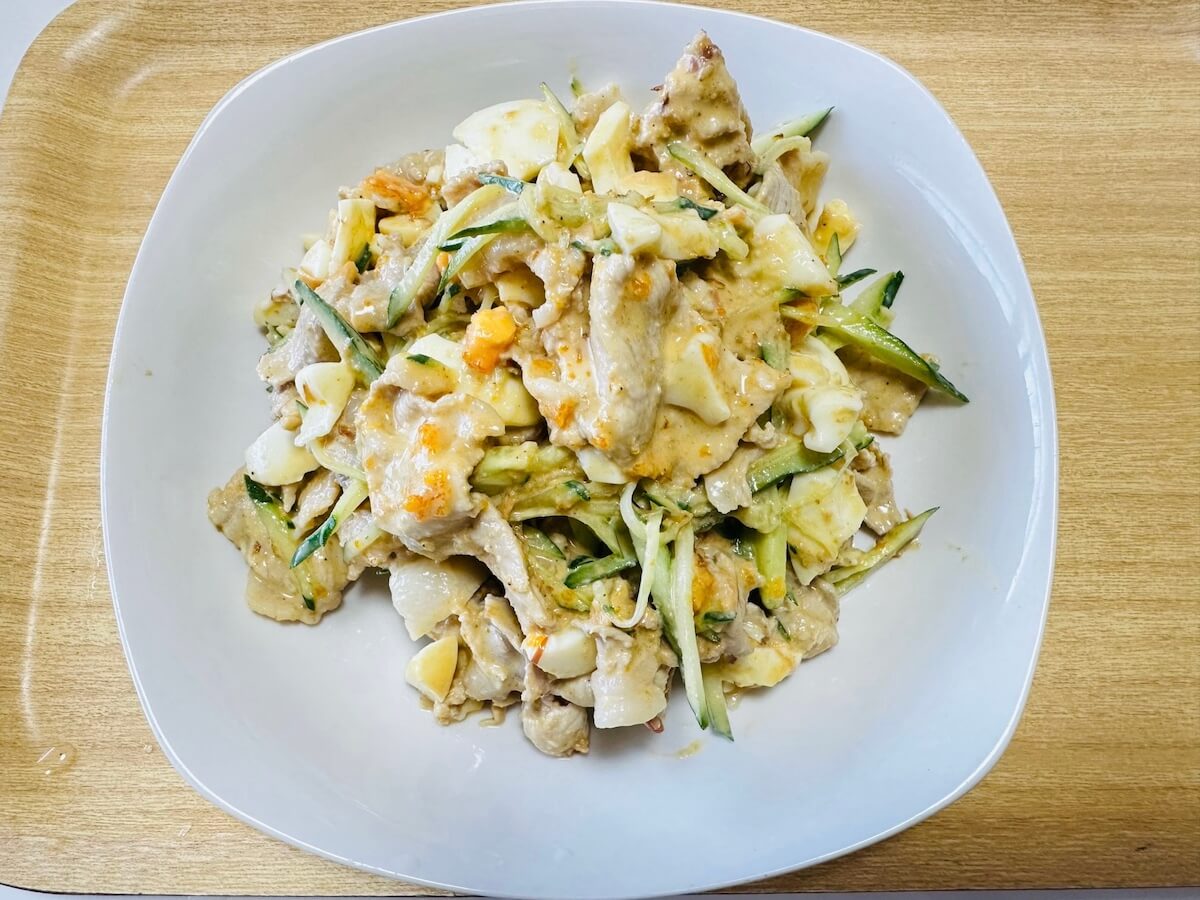 サイゾーウーマン暮らし食べ物【たまゴマ冷シャブ】さっぱり系をガッツリ食べたいとき 暮らし 【あのツイッターレシピ、やってみました】 さっぱり系なのにガッツリ食べられる【たまゴマ冷シャブ】、想像をはるかに超えるレシピだった 2024/08/24 19:00 アウちゃん(ライター) ツイッターレシピ、やってみました 料理がまったくできない主婦の私。もう何年も夫が料理を担当していますが、子どもの成長とともに「いやでも作らなあかん時」に見舞われるように……。そこで「かんたん」「ラクチン」とTwitterで話題のレシピにチャレンジしていきます! 目次 ・【たまゴマ冷シャブ】材料 ・【たまゴマ冷シャブ】料理手順 ・【たまゴマ冷シャブ】実食 今日のレシピ:【たまゴマ冷シャブ】 この投稿をInstagramで見る ぽっけ夫婦⌇家族が喜ぶ10分ごはん ღ 3kids(@pokkefufu_recipe)がシェアした投稿 インスタグラムで「いいね!」10万超えの超人気サラダシリーズを発見してしまいました。この【たまゴマ冷シャブ】を作ってみると、想像をはるかに超えるリピ確定サラダ! 「コッテリなの? さっぱりなの?」とわからなくなるけど、クセになってリピしまくっています。これは記憶喪失になっても思い出したいレシピに殿堂入り! 興奮気味にレポしていきます! 【たまゴマ冷シャブ】材料 材料(写真:サイゾーウーマン) 【材料】 ・豚肉 200g ・きゅうり 1/2本 ・ゆで卵(半熟) 2個 ◎すりごま 大さじ2 ◎マヨネーズ 大さじ1 ◎砂糖 大さじ1 ◎酢 小さじ1 ◎味噌 小さじ1 ◎醤油 小さじ2 ◎カツオ節 1パック (レシピはインスタグラム「ぽっけ夫婦⌇家族が喜ぶ10分ごはん ღ 3kids」より) 半熟卵を作り、きゅうりは千切りにしました。調味料は家にあるものでそろったのがうれしい。 【たまゴマ冷シャブ】料理手順 ①◎の調味料とゆで卵をボールに入れて混ぜます。 このぜいたくドレッシングが、すりごまの香りが良く、ネットリしていて豚肉にしっかり絡みそうです! タレを混ぜる(写真:サイゾーウーマン) 卵を潰す(写真:サイゾーウーマン) ②お湯に酒大さじ一を入れて沸騰したら弱火にして豚肉にサッと火を通してザルにあげておきます。 ③ぜいたくドレッシングの入ったボウルに、豚肉と千切りきゅうりを一緒に入れてよく和えたら完成です! 完成(写真:サイゾーウーマン) 半熟卵とねっとりゴマ風味のマヨネーズが、コッテリと絡んでビジュアルが最高すぎる! おいしそう!(写真:サイゾーウーマン) 暑い夏に、サッパリ食べられる「たまゴマ冷シャブ」かつお節や味噌など隠し味的なものが、たっぷり入っているので、味の想像がつきませんよね〜。筆者もワクワクが止まらなかったです。 【たまゴマ冷シャブ】実食 (写真:サイゾーウーマン) 食べてみると、半熟卵をタレにしてしまう発想に「そう来たか!」と思わず唸ってしまいました。豚肉が柔らかく、キュウリもたっぷりなのでサラダ感覚で食べられます。 ゆで卵の半熟具合がちょうど良かったのか、口の中で半熟部分がとろける感覚を味わえました。食べ進めてみると「これは! ただのゴマだれじゃないな」とハッキリ分かるほど、熟成した秘伝ダレのようなコク深い濃厚ダレです。あっさり食べられるけどしつこくない不思議なおいしさが、またハマってしまうポイント。 この夏に一度はチャレンジしていただきたいおすすめレシピです! 【総評】 もう一度作りたい度:★★★★★(半熟卵は常温で5分半茹で氷水で3分冷やすと奇跡的にうまく作れた) ズボラ主婦でも再現可能度:★★★★★(完成したら少し冷蔵庫で冷やしたほうがさらにおいしいかも) 夫ウケ:★★★★★(さっぱり系をガッツリ食べたい夫にも大ウケでした) ギャル曽根、和田明日香ほか『家事ヤロウ!!!』レシピ作ってみた集 (※画像クリックで記事に飛びます) 山本ゆり【レンチン納豆チャーハン】 ギャル曽根【たぬきやっこ】 和田明日香【新玉ねぎと豆腐のサラダ】 『相葉マナブ』【枝豆そうめんチャンプルー】 バズレシピ・リュウジ【シンマカロニサラダ】