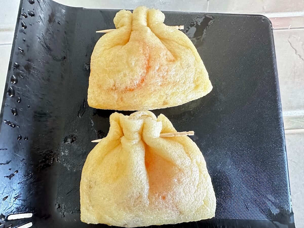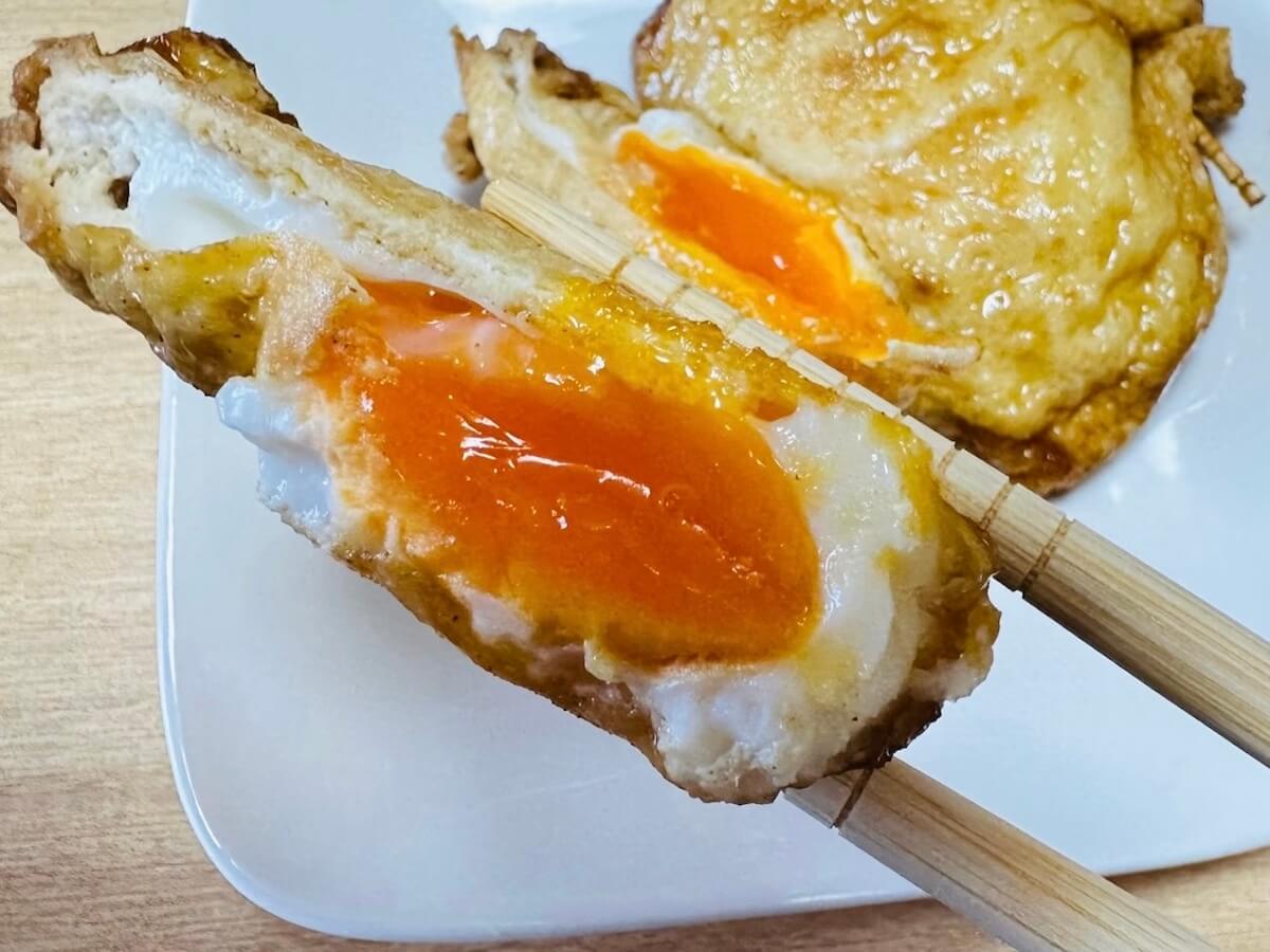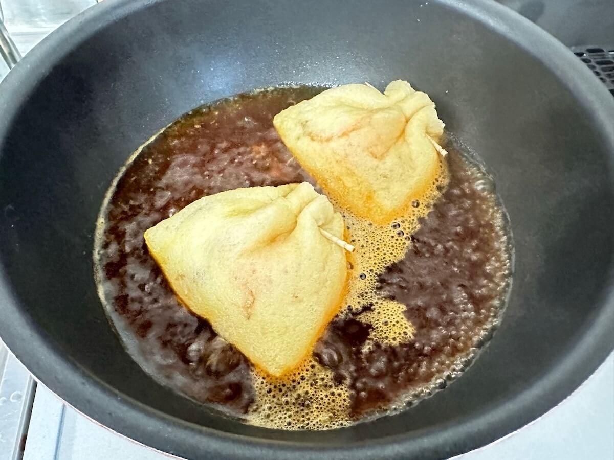 サイゾーウーマン暮らし食べ物【油揚げの巾着たまご】見た目に大興奮! 暮らし 【あのツイッターレシピ、やってみました】 ビジュアル良すぎて食べる前から大興奮、【油揚げの巾着たまご】作ったら味も満点レシピだった! 2024/09/14 19:00 アウちゃん(ライター) ツイッターレシピ、やってみました 料理がまったくできない主婦の私。もう何年も夫が料理を担当していますが、子どもの成長とともに「いやでも作らなあかん時」に見舞われるように……。そこで「かんたん」「ラクチン」とTwitterで話題のレシピにチャレンジしていきます! 目次 ・【油揚げの巾着たまご】材料 ・【油揚げの巾着たまご】料理手順 ・【油揚げの巾着たまご】実食 今日のレシピ:【油揚げの巾着たまご】 この投稿をInstagramで見る RINATY( りなてぃ )|献立 料理 レシピ|(@rinaty_cooking)がシェアした投稿 おでんの具にもぴったりの巾着。インスタグラムで16万「いいね!」を獲得した今回のレシピ「油揚げの巾着たまご」を考案したのは、83万人もフォロワーがいるRINATY(リナティー)さん。 こちら、巾着の中にたまごを入れて煮るんです! リール動画を見ると、油揚げに出汁がたっぷりと染み込みとってもジューシーでおいしそう。さっそく作ってみました! 【油揚げの巾着たまご】材料 材料(写真:サイゾーウーマン) 【材料】2人分 ・油揚げ(小さめ) 2枚 ・卵 2個 ・【A】水 100ml ・【A】醤油・酒・みりん・砂糖 各大さじ1 ・【A】ほんだし 小さじ½ (レシピはRINATY( りなてぃ )|献立 料理 レシピ|より) 用意しました。【A】はあらかじめ1つの容器にまとめて入れています。材料少なめ、油揚げを買うだけで材料がそろいました! 【油揚げの巾着たまご】料理手順 ①油揚げは端を切って開きます。 カットする(写真:サイゾーウーマン) ②熱湯を回しかけ油抜きし、水分を拭き取ります。 この油の抜き方は初めてですが、こんな感じで良いのでしょうか。 油抜き(写真:サイゾーウーマン) ③卵は小さな容器に1つずつ割り入れ、油揚げの中に入れて爪楊枝で巾着のように留めます。 油揚げが破れないかヒヤヒヤしましたが、ここまではなんとか成功しました。 生卵が入った巾着(写真:サイゾーウーマン) ④小鍋に【A】を入れて煮立たせ巾着を入れて5分、裏返して弱火で5分煮ます。 煮る(写真:サイゾーウーマン) ⑤完成しました。 この半熟卵感は狙ってできたものですが、我ながらうまくいったと自画自賛したい! ビジュアルが良すぎて食べる前から大興奮です。 完成!(写真:サイゾーウーマン) おでんの具にありそうですが、筆者はまだ食べた事がなく「もっと多めに作っておけばよかった」と食べる前から、ちょっと後悔してしまうくらいのビジュアルですね。 【油揚げの巾着たまご】実食 出汁と卵の相性良すぎ(写真:サイゾーウーマン) ジュワッと油揚げに染み込んだ出汁が口の中に広がり、トロッとした半熟卵との相性が良すぎます。結構煮込んだような味シミ具合で、お米がほしくなります。甘めの味付けなので子どもウケも良さそうだ〜! 時間通りに煮込んだら、ちゃんと半熟卵が再現できそうだし、比較的に難易度も高くない。小振りですが1つでも満腹感も思ったよりもありました! ということで、次は4個でチャレンジしてみよう♪ 「今日のご飯、もう一品欲しい」を簡単にかなえてくれる、隠しレシピに決定! 総評価満点がまた爆誕しました。 【総評】 もう一度作りたい度:★★★★★(高確率で成功する半熟卵がチャレンジしやすいレシピです) ズボラ主婦でも再現可能度:★★★★★(再現度も高め!) 子どもウケまたは夫ウケ:★★★★★(家族みんなが食べられる鉄板レシピがまた爆誕してしまった) ギャル曽根、和田明日香ほか『家事ヤロウ!!!』レシピ作ってみた集 (※画像クリックで記事に飛びます) 山本ゆり【レンチン納豆チャーハン】 ギャル曽根【たぬきやっこ】 和田明日香【新玉ねぎと豆腐のサラダ】 『相葉マナブ』【枝豆そうめんチャンプルー】 バズレシピ・リュウジ【シンマカロニサラダ】