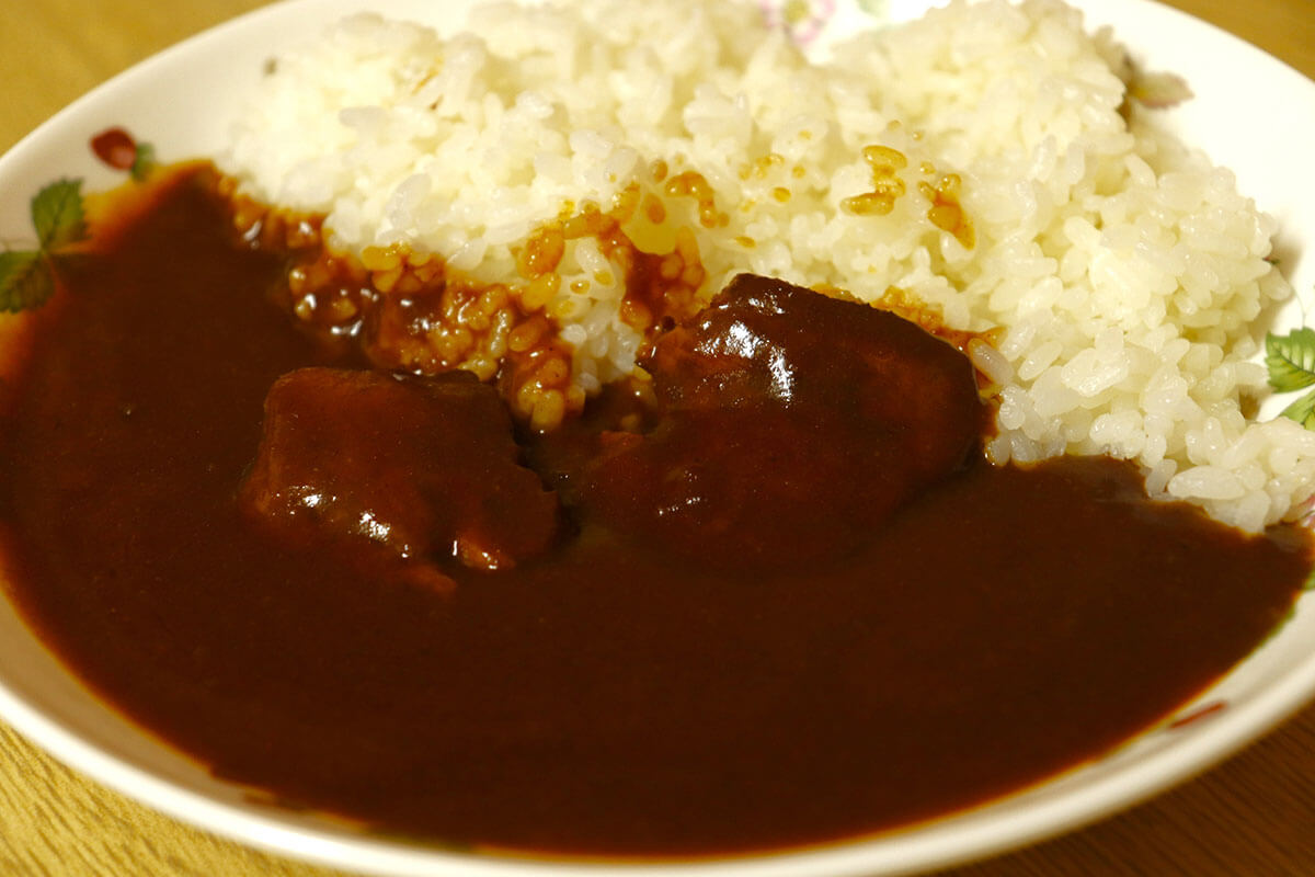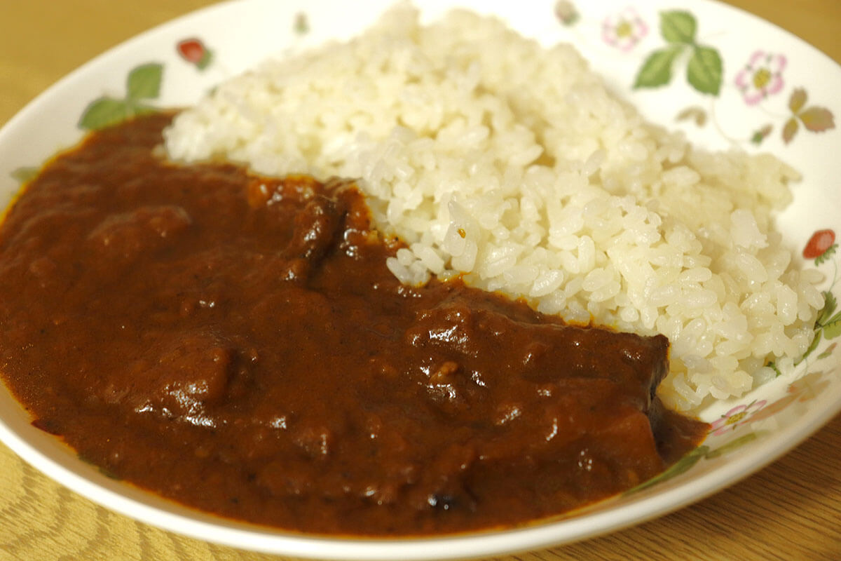 濃厚でコクのある味。ワイン系の渋みもあり、カレーというよりビーフシチューに近いかも。ピリ辛。
