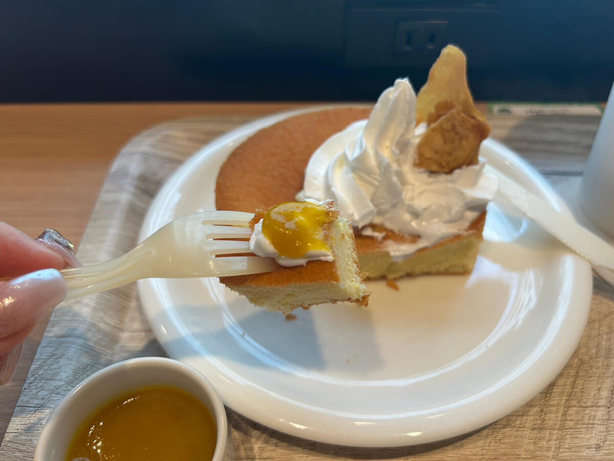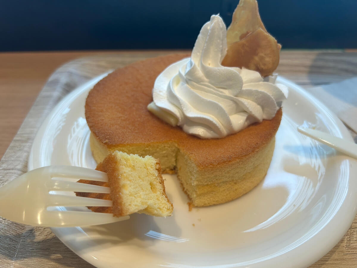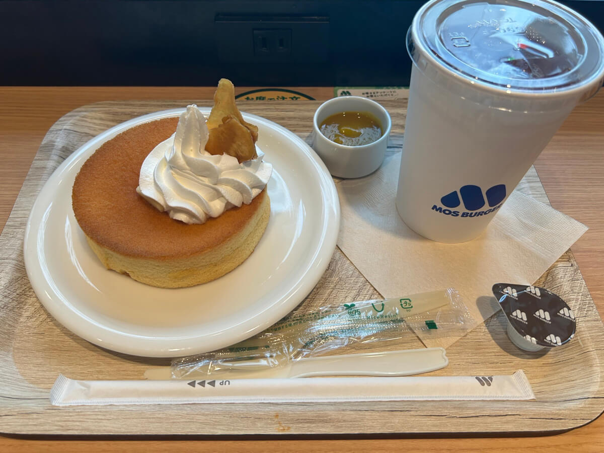 サイゾーウーマン暮らし食べ物【モスバーガー&カフェ】のスイーツ実食 暮らし 話題の新商品レビュー 73店舗に拡大【モスバーガー&カフェ】、590円期間限定「スフレパンケーキ」が想像以上だった! 2024/09/19 21:30 サイゾーウーマン編集部 「モスバーガー&カフェ」の外観(C)サイゾーウーマン モスバーガーを運営するモスフードサービスのカフェ事業のひとつ「モスバーガー&カフェ」。9月11日から期間限定のスイーツが販売されているということで、編集部員Mが実際に店舗で食べてきました! ※価格や商品は2024年9月19日時点の情報です。 ※最新の情報は公式サイトや公式SNSをご確認ください。 ※店舗によって取り扱う商品が異なります。 目次 ・モスバーガー&カフェ、店舗拡大中 ・秋冬限定の「さつまいも」新メニュー4品 ・「ふんわりスフレパンケーキ<おいも>」を実食 ・ドリンクセットがオススメなワケ モスバーガーのカフェ業態【モスバーガー&カフェ】、店舗拡大中 モスバーガーの新業態として2019年11月に1号店がオープンした「モスバーガー&カフェ」。オリジナルスイーツやカフェドリンクを楽しめるモスバーガーのカフェタイプのお店です。 モスバーガーはかつて、10年11月に同様のカフェ型店舗「モスカフェ」を開業。ハンバーガーのほか、タコライスやハンバーグ、カレー、サラダなどのオリジナルメニューを提供し、一時は各地に10店舗以上店があったものの、業績が振るわず21年8月頃までには4店舗にまで減少。のちに「モスカフェ」としての看板は下ろされました。 しかしその後、既存店を「モスバーガー&カフェ」としてリニューアルオープンしたり、新規出店を行い、現在は全国に73店舗を展開するまでに規模を拡大しています。 なお、運営元であるモスフードサービスの企業公式サイトで公開されている情報によれば、23年度の連結経営成績は、売上高が930億58百万円(前期比9.4%増)と過去最高を更新。営業利益は41億85百万円で増収増益となり、前期は赤字だった中、最終損益は25億73百万円の黒字に転換したといいます。この結果には、「モスバーガー&カフェ」の成長も影響していることでしょう。 今回は、そんな注目の「モスバーガー&カフェ」で、新作スイーツを実食してきました! 【モスバーガー&カフェ】秋冬限定の「さつまいも」新メニュー4品を発売! (写真:サイゾーウーマン) 9月11日に新発売した期間限定スイーツは、さつまいもを使用した以下の4品。 ・「北海道バター ふんわりスフレパンケーキ<おいも> ~鹿児島県産さつまいも~」(単品590円/ドリンクセット850円) 販売期間:24年9月11日(水)~25年1月下旬 ※イートイン専用商品 ・「熱々おさつボール」(3個入り260円/5個入り430円) 販売期間:24年9月11日(水)〜2024年11月中旬頃 ・「アイスおいもラテ ~鹿児島県産さつまいも~」(Mサイズ490円) 販売期間:24年9月11日(水)~11月中旬 ・「まぜるシェイク おいも ~鹿児島県産さつまいも~」(Sサイズ450円) 販売期間:24年9月11日(水)~11月中旬 「モスバーガー&カフェ」では、「ふんわりスフレパンケーキ」が看板スイーツのようだったため、今回は、秋冬限定のスフレパンケーキ「<おいも> ~鹿児島県産さつまいも~」味を食べてみることにしました。 「北海道バター ふんわりスフレパンケーキ<おいも>」を実食! 「モスバーガー&カフェ」のメニューの一部(写真:サイゾーウーマン) こちらが実物の写真。私は850円のドリンクセットを購入しました。 厚みも十分です(C)サイゾーウーマン スマホの計測アプリを使用してパンケーキのサイズを測ったところ、直径約11cm、厚さは3.5~4cmほどありました。 ナイフを入れてみたところ、生地はふわっふわ! おそらく冷凍したものを解凍しているため、店で焼き上げる某「星〇珈琲店」の「スフレパンケーキ」のように、表面がカリッとする感じはなく、ややしっとりしていました。 生地のふわふわ感、写真で伝わらないのが残念(C)サイゾーウーマン まずはなにもつけずにそのまま食べてみると、生地自体に甘みがあって、このままでもおいしい! また、ホイップクリームは想像よりも甘さ控えめで、スフレにつけて食べても、そこまで甘くなりすぎず、ちょうどいい塩梅でした。 別添えの濃厚なさつまいもソース(C)サイゾーウーマン そして、鹿児島県産「紅はるか」と黄金色の「マロンゴールド」のペーストが使われているという肝心のソースは、焼き芋にしたときの蜜の部分をそのままソースにしたような感じでかなり濃厚。口に入れた瞬間、ねっとりとした甘みが広がります。 クリームの上にトッピングされているさつまいもチップは、素材の味がそのまま生かされた素朴な味で、ソースをつけて食べてみたところ、同じさつまいもでも調理の仕方でこんなに変わるのかと、味の広がり方に違いがあって、楽しかったです。 バターは先に全体に塗っておくのをおすすめします(C)サイゾーウーマン なお、生クリームの下に北海道バターが隠れていることに気づかず食べ進めていたのですが、ある