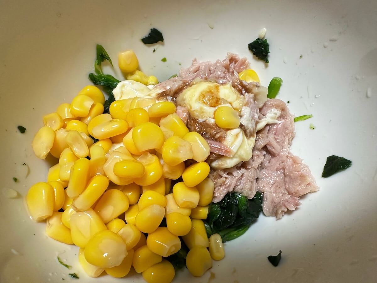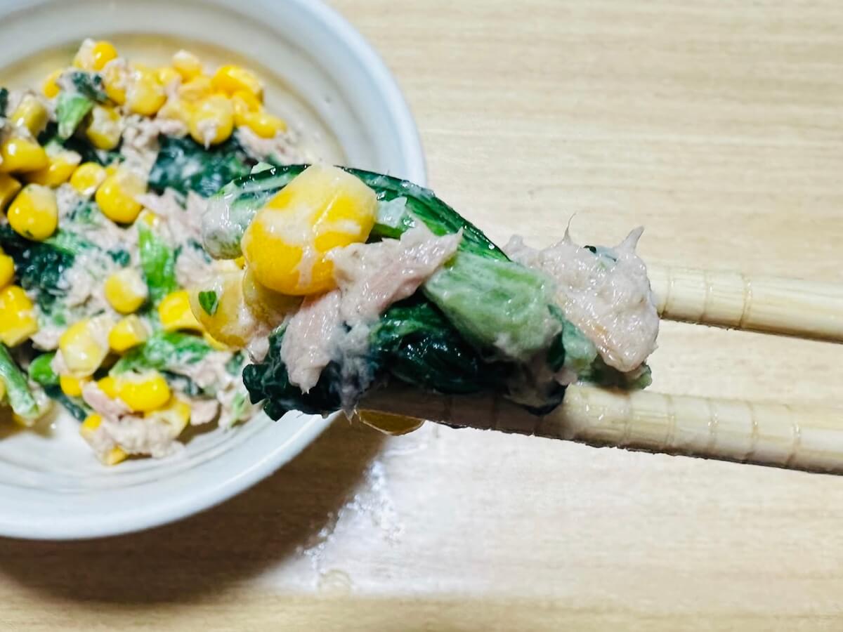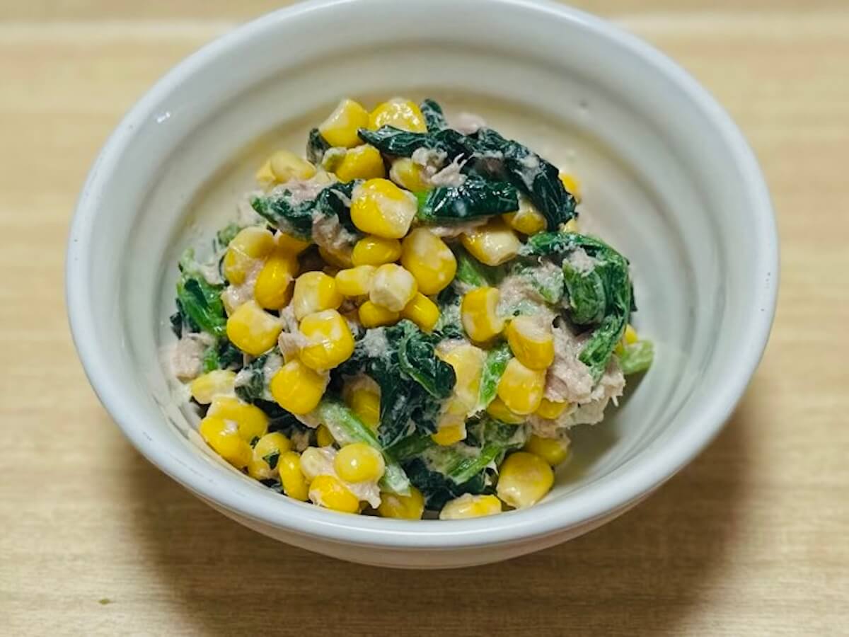 サイゾーウーマン暮らし食べ物300万人が見た【ツナコーン】レシピ 暮らし 【あのツイッターレシピ、やってみました】 300万人が見た【ツナコーン】レシピは「味染みジュワッ」! お弁当との相性めちゃくちゃ良しだった 2024/10/05 19:00 アウちゃん(ライター) ツイッターレシピ、やってみました 料理がまったくできない主婦の私。もう何年も夫が料理を担当していますが、子どもの成長とともに「いやでも作らなあかん時」に見舞われるように……。そこで「かんたん」「ラクチン」とTwitterで話題のレシピにチャレンジしていきます! 目次 ・【ツナコーン】材料 ・【ツナコーン】料理手順 ・【ツナコーン】実食 今日のレシピ:300万人が見た!【ツナコーン】 この投稿をInstagramで見る おかず部/簡単おかずレシピ(@okazubu)がシェアした投稿 お弁当のおかずにもう一品欲しいとき、インスタグラムで見つけた「ツナコーン」。偶然ツナもコーンも冷蔵庫にあったから、あとはほうれん草を買うだけ! って思っていたら、冷凍庫に冷凍ほうれん草を発見しました。これはもう作るしかないでしょ。 でも、冷凍を使って大丈夫かな? と不安はあったものの、時短にもなるし使うことに決めました。レッツクッキングです! 【ツナコーン】材料 材料(写真:サイゾーウーマン) 【材料】(2〜3人分) ・ほうれん草 1束 ・コーン缶 1缶 ・ツナ 1缶 ☆マヨネーズ 大さじ1.5 ☆醤油 小さじ2 ☆砂糖 小さじ1 ☆ニンニクチューブ 材料を用意しました。ほうれん草は解凍して軽く水分を切る予定です。ツナ缶は油を切らずに全て入れます。 【ツナコーン】料理手順 ①ほうれん草とツナ、コーン、☆の調味料を全て入れて混ぜ合わせるだけ! 普通のほうれん草を使用する場合は、茹でて洗って絞りボウルに入れます。画像は下のほうにほうれん草が隠れています。 全部を混ぜる(写真:サイゾーウーマン) コーンと冷凍ほうれん草から若干、水分が出てきましたが、まったく気にしません。だって茹で時間5分ほどを時短できたのですから♪ 完成!(写真:サイゾーウーマン) お弁当に入れる前に試食してみることにしました! ツナからも少し水分が出ているような気がします……ツナから水分? 出るのだろうか? 油じゃないの? 疑問が浮かびましたが、食べてみましょう。 【ツナコーン】実食 ジュワッっと味染み(写真:サイゾーウーマン) 思った以上に味が濃いめで、少しニンニクが香ってきます。コーンがシャキシャキしていておいしい組み合わせです。2口ほど試食をしてからお弁当に入れようとしましたが、水分が気になったので別の小さめのタッパーに入れて、お昼のお弁当時間にあらためて食べてみました。 冷凍ほうれん草だからなのか? コーンからなのか? 詳しいことはわかりませんが、やはり水分は多め。しかし醤油とツナの味がしっかりしているので、ほうれん草に濃いめの味付けがしっかり染み込んでいて、ジュワッとしたほうれん草が激ウマです。 お弁当との相性もめちゃくちゃ良いなと大満足でした。冷凍ほうれん草を使って時短しても問題なく食べられたので、お弁当に「もう一品!」レシピに決定です! 【総評】 もう一度作りたい度:★★★★☆(冷凍ではないバージョンにも次回チャレンジしてみたい) ズボラ主婦でも再現可能度:★★★★★(冷凍ほうれん草を使って超時短できるから朝バタの際の救世主) 子どもウケまたは夫ウケ:★★★★☆(甘いシャキシャキコーンと大人気シーチキンの相性は子どもにも受けよし) ギャル曽根、和田明日香ほか『家事ヤロウ!!!』レシピ作ってみた集 (※画像クリックで記事に飛びます) 山本ゆり【レンチン納豆チャーハン】 ギャル曽根【たぬきやっこ】 和田明日香【新玉ねぎと豆腐のサラダ】 『相葉マナブ』【枝豆そうめんチャンプルー】 バズレシピ・リュウジ【シンマカロニサラダ】