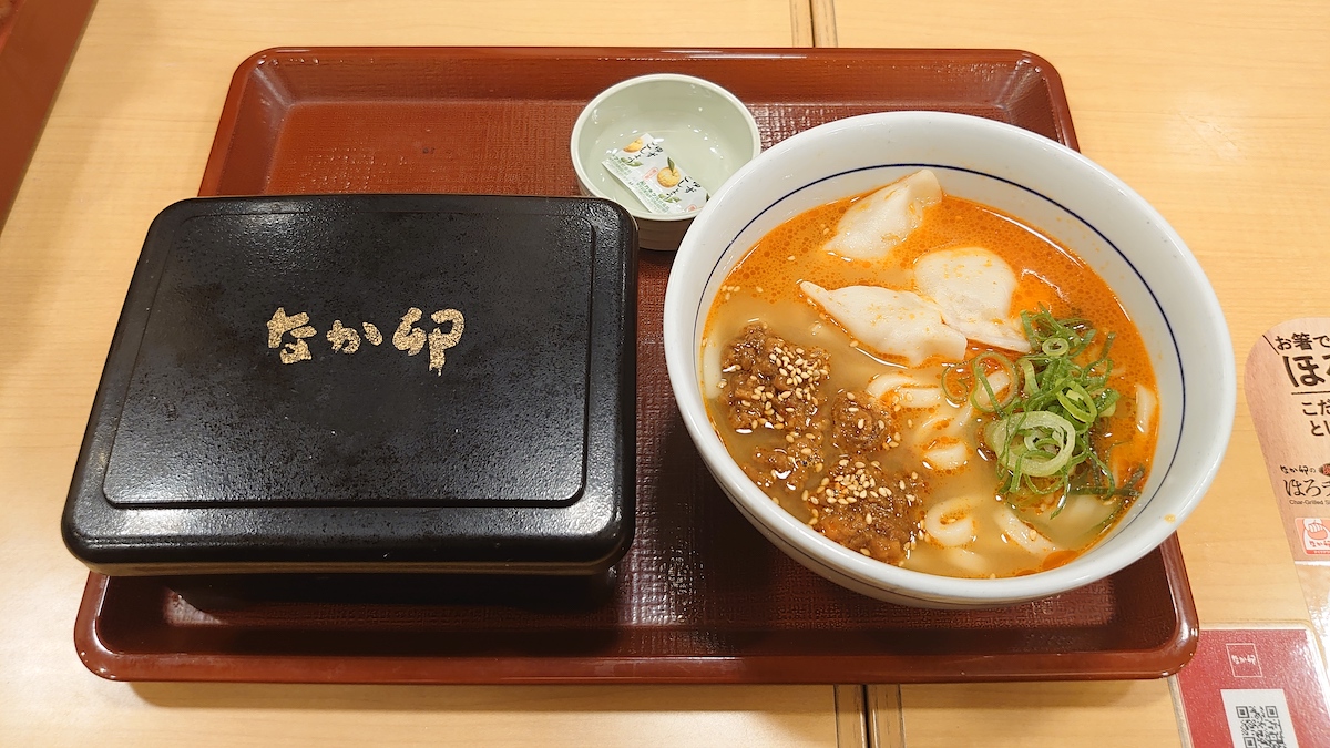 サイゾーウーマン暮らし食べ物【なか卯】期間限定品のパンチがすごい! 暮らし 話題のチェーン店探訪 見た目がすごい【なか卯】新作690円「ほろチキ親子重」、食べてもビックリだった! 2024/10/25 15:00 阿左美賢治(ライター) なか卯 なか卯の看板(写真:サイゾーウーマン) ゼンショー系列の丼・うどんチェーン「なか卯」。同チェーンが10月23日より販売を開始した期間限定メニュー2つの実力を確かめるべく、グルメライターが店舗を訪れ実食してきました。 目次 ・【なか卯】かつては牛丼イメージも……看板メニューは「親子丼」 ・期間限定「ほろチキ親子重」「水餃子担々うどん」登場! ・「ほろチキ親子重」実食! ・「水餃子担々うどん」実食 ・「ほろチキ親子重」かなりのハイレベル 【なか卯】かつては牛丼イメージも……看板メニューは「親子丼」 「なか卯」」の外観(写真:サイゾーウーマン) 「すき家」などで知られる株式会社ゼンショーホールディングスの連結子会社である株式会社なか卯が運営する“丼ぶりと京風うどん”がメイン商品のファストフードチェーン「なか卯」。公式サイトによれば、今年の3月末現在で全国に455店舗を展開しています。 実は、往年の名作「キン肉マン」の中に登場する牛丼屋のモデルとなったことでも知られているなか卯。同作品の29(ニク)周年に当たる2008年には、その牛丼でコラボキャンペーンが実施されたこともあります。 その後は、「和風牛丼」と名前を変えながら販売され続けていましたが、14年に「牛すき丼」に取って代わる形で販売終了。翌15年には復活を果たすも販売を終了し、現在は再び「牛すき丼」が販売されています。 一方、今のなか卯の看板メニューといえば「親子丼」で間違いないでしょう。各種の人気ランキングでは1位が軒並み「親子丼」となっています。そんな「親子丼」について、期間限定メニュー「ほろチキ親子重」(690円)が登場しました。 【なか卯】期間限定「ほろチキ親子重」「水餃子担々うどん」登場! 「ほろチキ親子重」の見た目のすごさに興味を惹かれた筆者は、その実力を確かめるべく、店舗を訪れ実食してきました。 店舗の壁に貼られていた「ほろチキ親子重」をアピールする垂れ幕(写真:サイゾーウーマン) 調べてみると、この「ほろチキ親子重」は、昨年の9月にも販売されたメニューであり、今回はおよそ1年ぶりの復活となるメニューとのこと。また、23日には同じく期間限定メニューである「水餃子担々うどん」(690円)というメニューも販売が開始されており、こちらも注文することにしました。 【なか卯】期間限定690円「ほろチキ親子重」実食! 今回注文した「ほろチキ親子重」と「水餃子担々うどん」(写真:サイゾーウーマン) 店舗を訪れ、食券を購入してから5分程度で提供されたこれらのメニュー。さっそく、目当てであった「ほろチキ親子重」から食べ進めていきます。 ふたを取ったところ(写真:サイゾーウーマン) 丼の上にはおいしそうな焼き目のついた骨付きのもも肉が鎮座しています(写真:サイゾーウーマン) その下には半熟の卵とじとご飯がありました(写真:サイゾーウーマン) 味変用に、小皿に入ったゆずこしょうが添えられています(写真:サイゾーウーマン) もも肉は箸がすっと入るほどに柔らかく……(写真:サイゾーウーマン) 骨も簡単に取れました(写真:サイゾーウーマン) 実食前から筆者は、「“ほろチキ”と名前に冠しているわけだし、かなり柔らかいチキンなんだろうな」と予想していましたが、一方で懸念だったのはパサつき。一般的に、煮込みなどによってホロホロになったチキンは、肉自体から水分が出てしまい、柔らかいものの繊維を強く感じるパサつきが出てしまうことが多々あります。 チキンカレーなどではそうしたチキンのパサつきも一つの“味”と思える部分がありますが、もも肉の親子丼としてはどうなんだろう、と思いながら食べてみるとビックリ。 ホロホロとした食感ながらも、ジューシーさも兼ね備えた鶏肉は、噛むと中からあふれた肉汁が卵とじやご飯と口の中で混じり、まさに絶品の味わいだったのです。 「なか卯」の公式サイト内にある「ほろチキ親子重」の紹介ページでは、鶏肉の調理について“備長炭で表面を香ばしく焼き上げた後、じっくり丁寧に蒸し上げた”と説明されており、それがこの食感を生み出す秘訣なのかもしれません。 少し濃いめの半熟卵とじと、それと混じり合い卵かけご飯のようになったライスも、この鶏肉の好相性で、ちょっとぜいたくなご飯を食べているような気分になりました。 半分ほど食べ進めたところで、味変として添えられていたゆずこしょうを使ってみると、ゆずの香りと青唐辛子の辛さによって、かなり大人向けの味わいに変身。こちらもかなりおいしいのですが、筆者のオススメは卓上調味料の一つである山椒との組み合わせです。濃厚な味わいに、山椒の爽やかさがベストマッチで、一気に食べきってしまいました。 ゆずこしょう