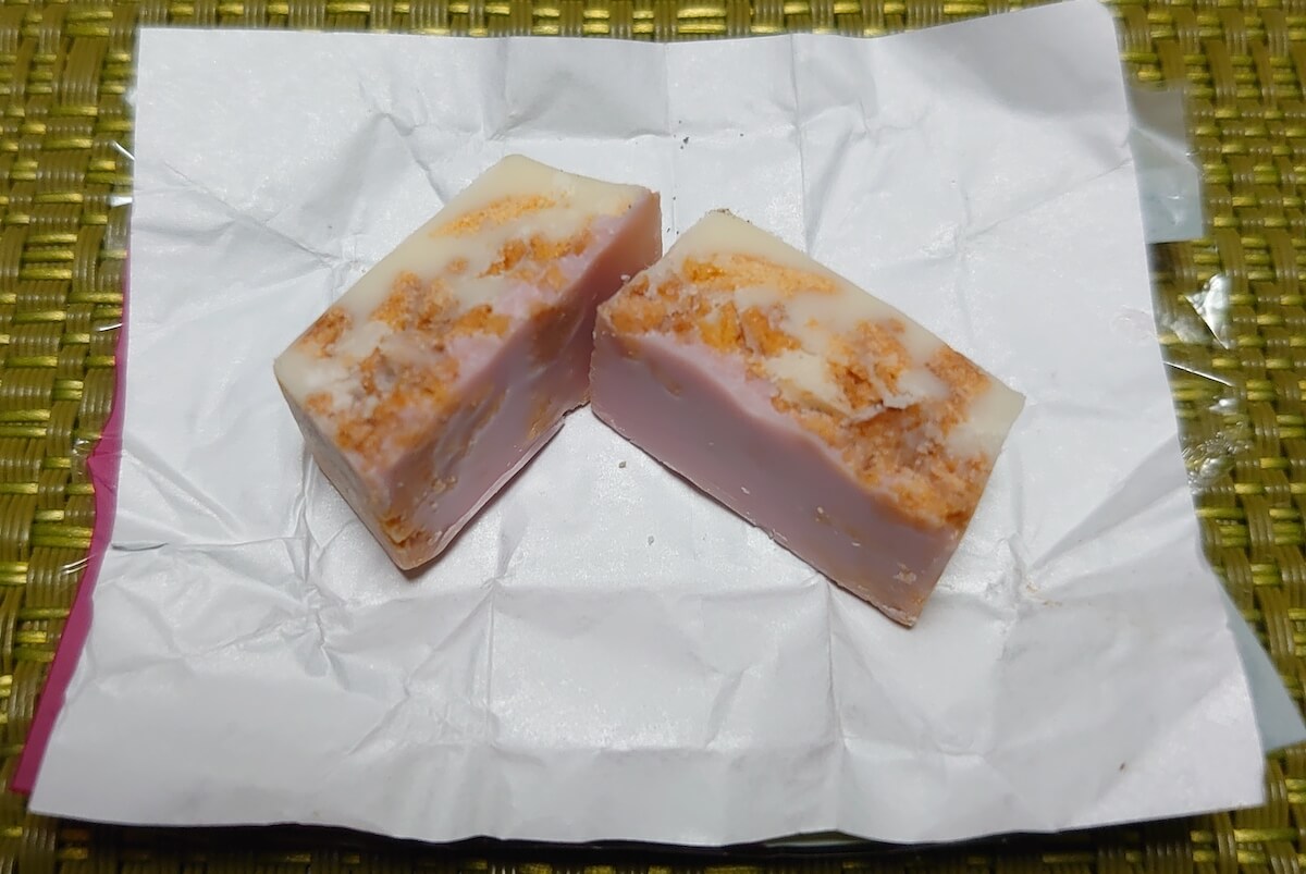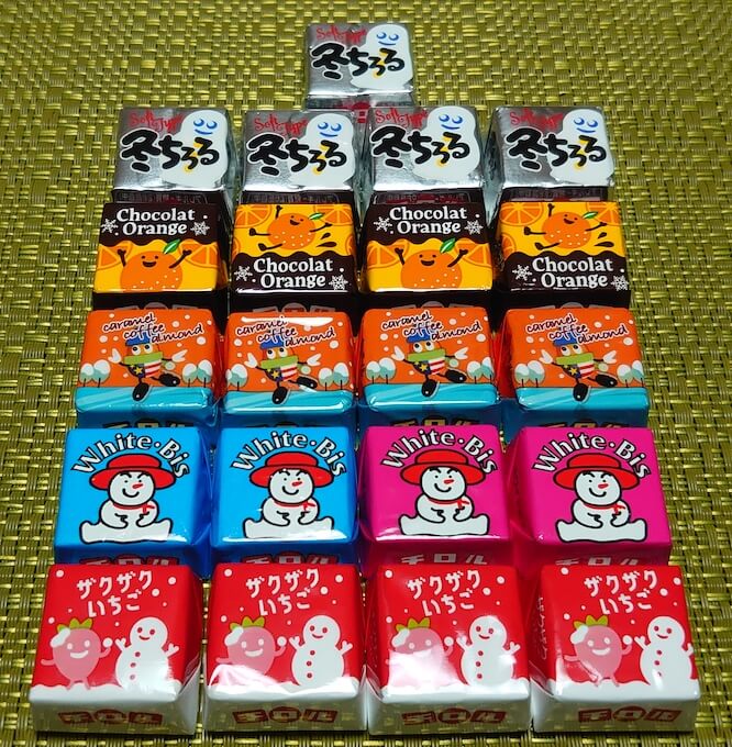 サイゾーウーマン暮らし食べ物【チロルチョコ】新作が15円とは思えない完成度 暮らし 15円とは思えない本格的な味! 【チロルチョコ】季節限定の新作、グルメライターが選ぶ一粒は? 2024/10/28 15:00 阿左美賢治(ライター) (写真:サイゾーウーマン) 国民的なお菓子の一つといっても過言ではない正方形の小型チョコレート「チロルチョコ」。21日から期間限定で発売された同商品の新シリーズ「チロルチョコ(冬のバラエティパック)」をグルメライターが実食レビューします。 目次 ・【チロルチョコ】とは? 期間限定の新商品が魅力的 ・【チロルチョコ】冬のバラエティパックの中身は? ・冬のバラエティパックを実食! ・キャラメルコーヒーアーモンドは15円強のチョコレートとは思えない完成度 【チロルチョコ】とは? 期間限定の新商品が魅力的 チロルチョコ株式会社が販売する「チロルチョコ」。かわいい包装に包まれた正方形のミニチョコレートである同商品は、国民的なお菓子の一つとして長い間親しまれています。 もともと、福岡県の製菓会社である松尾製菓株式会社が、子どもが購入できる廉価なチョコレートをコンセプトとして1962年に販売を開始。オーストリアのチロル州から名前をとったこの商品は、元々は現在の「チロルチョコ」が3つくっついたような形の3つ山チョコが10円で販売されていました(なお、この商品は現在も「チロルチョコ〈ミルクヌガー 〉」として販売されています)。 しかし、その後コスト増に伴い、値上げをしたところ売り上げが下がったため、79年に山を分割する形で現在と同じ正方形の商品を販売。これ以降、再び人気を獲得し、販売から60年以上たった今も定番のお菓子として多くの人に愛されています。 そんな「チロルチョコ」の大きな魅力の一つが期間限定の商品。コンビニなどで新商品を見つけると、ついつい買ってしまうという人も多いのではないでしょうか? 筆者もその一人であり、近年特にハマったもので言えば、昨年の5月に発売された「カヌレ」と、一昨年の12月に発売された「ロイヤルミルクティー」が挙げられます(特に後者はマジでおいしかったので、ぜひ復刻して欲しいものです)。 そして、10月21日に「チロルチョコ」の季節限定商品として「チロルチョコ(冬のバラエティパック)」(324円、税込み/以下同)という詰め合わせ商品が発売されました。 【チロルチョコ】冬のバラエティパックの中身は? 購入した「チロルチョコ(冬のバラエティパック)」(写真:サイゾーウーマン) さっそく同商品を購入しようと、近くのスーパーやコンビニなどの小売店に向かった筆者でしたが、なんとどこも置いていないことが発覚。 チロルチョコ株式会社に問い合わせると、やはりコンビニ各社やスーパー、ディスカウントストアなどで販売されているとの回答を頂きましたが、一方で「一部の小売店では、冬用の商品として仕入れているため、店舗に並ぶタイミングは遅くなるのではないか」とのことでした。 そのため、今回はチロルの公式通販サイトから購入することに。店頭販売を待たず、確実に「チロルチョコ(冬のバラエティパック)」を手に入れたいという人には、この入手方法が確実かもしれません(ただし、送料が沖縄県では1350円、それ以外の都道府県では880円かかる点に注意。筆者は商品の価格より送料がはるかに高いという買い物となってしまい、ちょっと損した気分になってしまいました)。 パッケージ裏に書かれていたラインナップ(写真:サイゾーウーマン) 袋から取り出し、種類ごとに並べてみました。「冬ちろる」だけ1つ多い5個、他は4個入っています(写真:サイゾーウーマン) チロルチョコ(冬のバラエティパック) ・冬ちろる 5個 ・ショコラオランジュ 4個 ・キャラメルコーヒーアーモンド 4個 ・ホワイトビス 4個 ・ザクザクいちご 4個 今回のバラエティパックには「冬ちろる」「ショコラオランジュ」「キャラメルコーヒーアーモンド」「ホワイトビス」「ザクザクいちご」の5種類のフレーバーが入っています。 このうち、完全新作となるのは「ショコラオランジュ」で、そのほかの4種類に関しては、2023年10月に発売された同名の商品からの続投。 なお、昨年は「ショコラオランジュ」のかわりに「ピスタチオ」が入っているラインナップで、「キャラメルコーヒーアーモンド」も新フレーバーとなっていました。なお、内容数は「冬チロル」が5個、その他が4個ずつの計21個となっています。 【チロルチョコ】冬のバラエティパックを実食! 完全新作「ショコラオランジュ」 ショコラオランジュ(写真:サイゾーウーマン) ショコラオランジュ(写真:サイゾーウーマン) ショコラオランジュ断面(写真:サイゾーウーマン) まずは、今回の“目玉”である新フレーバーの「ショコラオランジュ」から。ミルクチョコの中にオレンジ風味クリームが入っていて、チョコレートの風味とオレンジの香り、酸味がしっかりと合わさり、ちゃんと(というのも失礼かもしれませんが