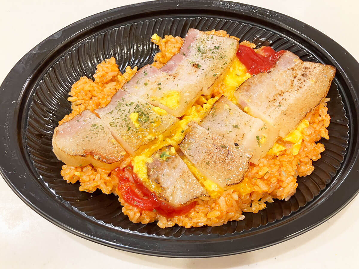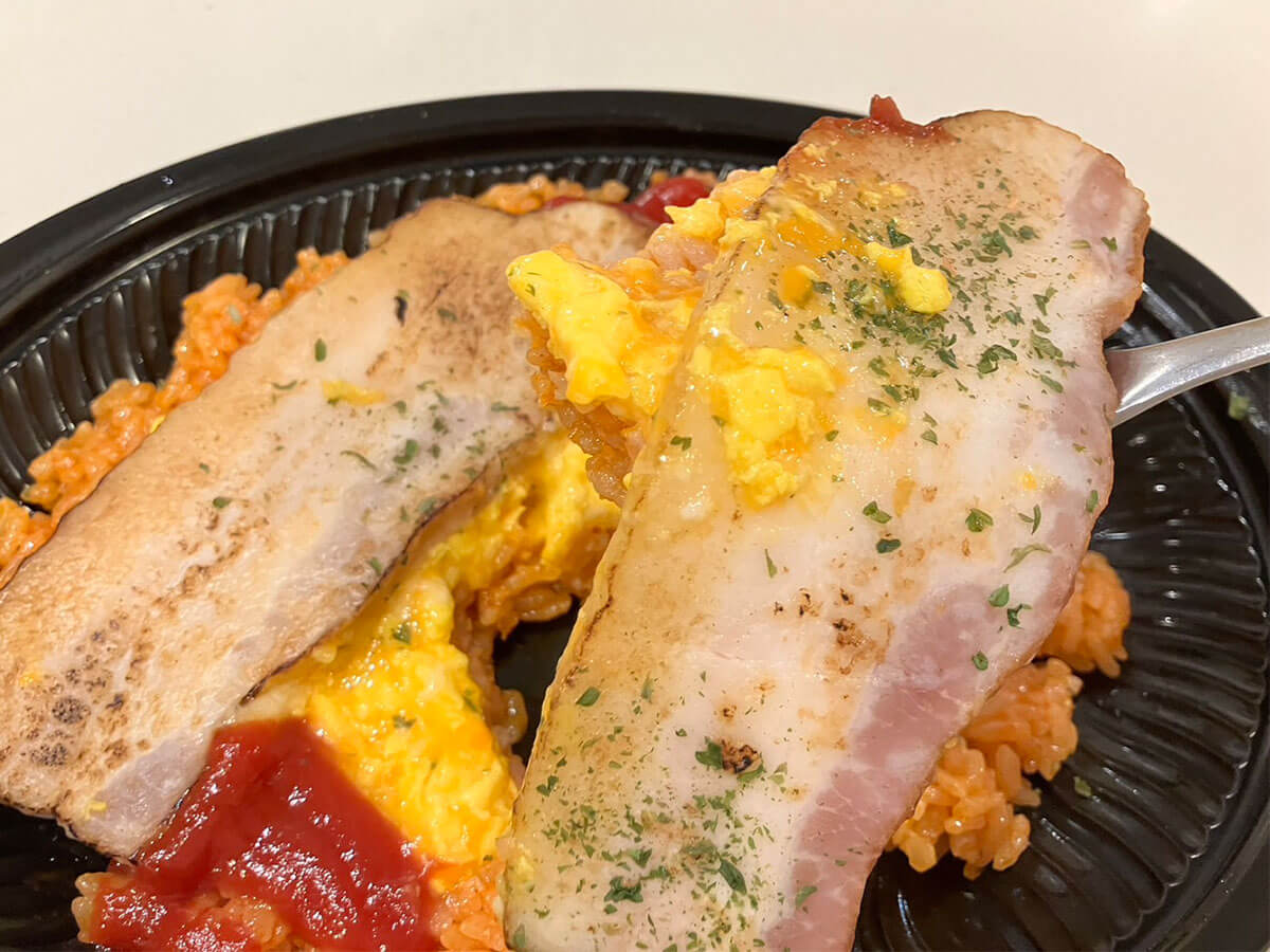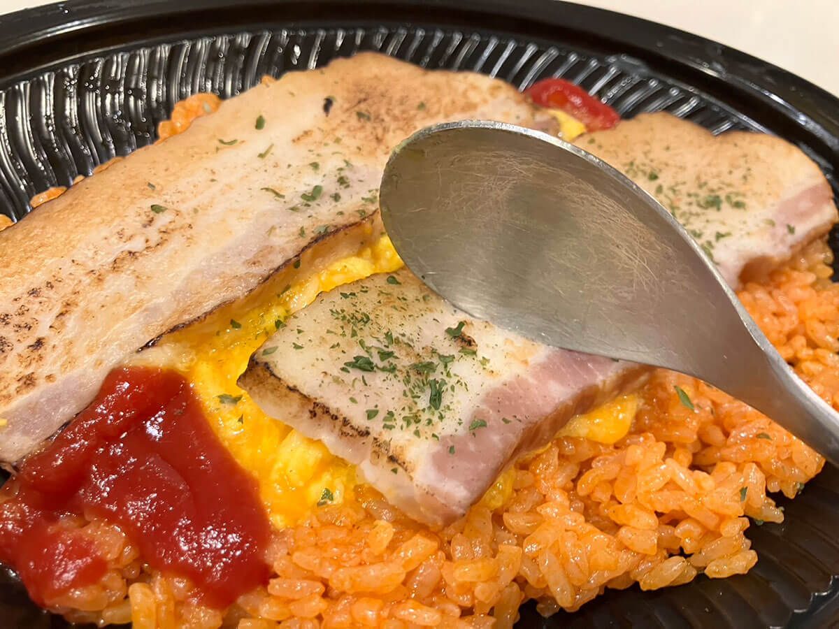 サイゾーウーマン暮らし食べ物【ロピア】486円オムライスを実食 暮らし ロピア集中連載 【ロピア】486円「自慢のベーコンど~ん!!オムライス」食べたら、「脂身9割」ベーコンで罪深かった! 2024/11/05 18:00 沢口ピア子(ライター) ロピア ロピアの看板(写真:サイゾーウーマン) 見た目が華やかで大容量と評判の「食生活♡♡ロピア」(読み:しょくせいかつラブラブロピア)のお惣菜。その中から豪快な見た目のオムライスを紹介します! 目次 ・【ロピア】10年で売上約7倍! 新店舗続々 ・「自慢のベーコンど~ん!!オムライス」をチェック ・自家製ベーコンをカット! ・自家製ベーコンが「ほぼ脂身」 ※価格はすべて税込み。 ※店舗によって取り扱い商品や価格が異なります。 ※2024年10月15日の情報です。 【ロピア】10年間で売上高は約7倍! 台湾にも5号店 ロピアの入り口(写真:サイゾーウーマン) OICグループ傘下で、首都圏を中心に全国約100店舗を展開するロピアは、この10年間で売上高は約7倍に増加し、新店舗も続々と開業。今年10月だけでも岐阜県、埼玉県、福岡県に加え、台湾5号店がオープンしました。 さらに、11月には札幌市・イトーヨーカドー屯田店の跡地に「北海道1号店」となるロピアが開業予定。道内では今後5年間で25店舗を出店予定だといい、一部メディアから「もっとも上場に近いスーパー」とも評されています。 【ロピア】「自慢のベーコンど~ん!!オムライス」486円をチェック そんなロピアで筆者がいつものようにお買い物していると、Xの“あの騒動”を彷彿とさせるオムライスを発見! こちらがその「自慢のベーコンど~ん!!オムライス」(486円)です。 筆者は30%引きで購入(写真:サイゾーウーマン) ベーコンは炙ってある様子(写真:サイゾーウーマン) オムライスにのっているのは、ロピアの自家製ベーコンだそうです。 店舗によっては6月頃から売られていたもよう。ただ、ネット上ではベーコンが1枚のっている商品ばかりが出てきますが、こちらは2枚のせ! ケチャップはハート型(写真:サイゾーウーマン) ベーコンをめくるとトロトロ玉子(写真:サイゾーウーマン) 原材料(写真:サイゾーウーマン) 主な材料は、ごはん、ナポリタンソース、半熟風玉子、ベーコン、トマトケチャップ、パセリ。どうやらケチャップライスに玉ねぎなどの具材は入っていないようです。 【ロピア】「自慢のベーコンど~ん!!オムライス」自家製ベーコンをカット! ギコギコ(写真:サイゾーウーマン) 早速食べようとしましたが、ぶ厚いベーコンがスプーンでは切れませんでした。 重い……(写真:サイゾーウーマン) 「自慢のベーコン」をそのまま持ち上げてみましたが、食べにくいかも……。 これでよし(写真:サイゾーウーマン) フォークに持ち替えて豪快にベーコンをいただくのも楽しそうですが、オムライスと一緒に食べたいのでキッチンバサミでカットしました。 【ロピア】自家製ベーコンが「ほぼ脂身」……背徳感がやばい 実はカットする前から薄々気づいていたのですが、カットしたことで確信に変わったことがあるんです……それは、ベーコンが2枚とも「ほぼ脂身」であること! ほぼ半透明の断面(写真:サイゾーウーマン) こっちも(写真:サイゾーウーマン) ピンク色の肉が付いた部分を発見(写真:サイゾーウーマン) 皆さんは、8月に「しゃぶしゃぶ温野菜」で食事をしたXユーザーが、「温野菜でこれが出てきて一瞬時が止まった」という文章とともに、9割以上が脂身と思われるしゃぶしゃぶ用イベリコ豚の画像をアップロードし、大騒動となったのを覚えていますでしょうか。なんとも、あの騒ぎを彷彿とさせるベーコンです。 筆者はおいしければ大概のことは問題ないタイプなので、今のところ「全然アリ」! ただ、すべての「自慢のベーコンど~ん!!オムライス」が脂身だらけなのではなく、こういうことはおそらく稀なので、「脂身より肉が食べたい」という方もご安心を。 背徳感がやばい(写真:サイゾーウーマン) ベーコンの脂身をのせたオムライスをいただいてみます。 シンプルなケチャップライスは甘めの味付けで、お子さまランチにありそうな懐かしい味わい。そこに豚の脂身の甘味が加わり、背徳感を覚えずにはいられない罪深い味でした。 ほぼ半透明のベーコンに目が釘付けとなった今回の実食。ロピアはこのほかにも豪快な商品や“映える”お惣菜が目白押しなので、お立ち寄りの際はぜひチェックしてみてくださいね。 非公開: 【ロピア新商品】486円「ミニバターワッフル」が濃厚でおいしい! 1個35円、一気食いに要注意 「今もっとも勢いのあるスーパーマーケット」と言っても過言ではない「食生活♡♡ロピア」(読み:しょくせいかつラブラブロピア)。こちらの惣菜コーナーで魅力的な新商品を発見...サイゾーウーマン2024.10.26非公開: 鎧塚パティシエの洋菓子店買収で騒然、【ロピア】スイーツの味は? 5品食べてみた! 食品スーパー「食生活♡♡ロピア」(読み:しょくせいかつラブラブロピア)を運営するOICグループ。10