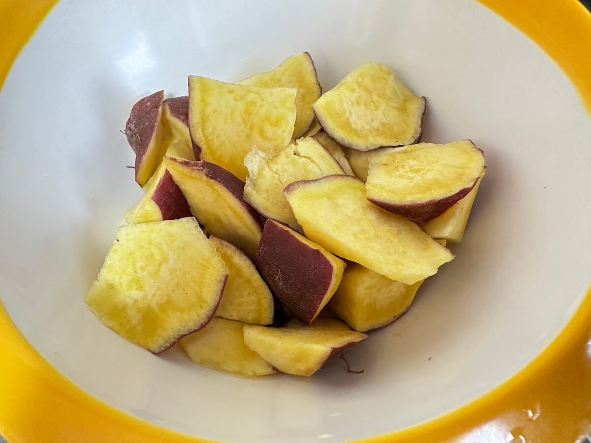 サイゾーウーマン暮らし食べ物【豚バラ肉とさつまいもの甘辛炒め】ハマること間違いなし 暮らし 【あのツイッターレシピ、やってみました】 芋消費レシピ【豚バラ肉とさつまいもの甘辛炒め】作ったら、甘み濃厚で味付け◎だった! 2024/11/09 19:00 アウちゃん(ライター) ツイッターレシピ、やってみました 料理がまったくできない主婦の私。もう何年も夫が料理を担当していますが、子どもの成長とともに「いやでも作らなあかん時」に見舞われるように……。そこで「かんたん」「ラクチン」とTwitterで話題のレシピにチャレンジしていきます! 目次 ・【豚バラ肉とさつまいもの甘辛炒め】材料 ・【豚バラ肉とさつまいもの甘辛炒め】料理手順 ・【豚バラ肉とさつまいもの甘辛炒め】実食 今日のレシピ:【豚バラ肉とさつまいもの甘辛炒め】 この投稿をInstagramで見る 【365日時短料理】あぴ♡(@apii_cook)がシェアした投稿 先週、次男が芋掘り遠足に行って、大量に持ち帰ったさつまいも。まだ500gくらい残っていたので、2週連続でさつまいもレシピです。 さつまいもの季節だからSNSでも苦労せずに、さつまいもレシピがどんどん見つかるけれど、逆にありすぎて迷ってしまう。 今回はとってもおなかが空いていたので「おなかいっぱいにさつまいもが食べられるレシピ」を検索してヒットしたのが「豚バラ肉とさつまいもの甘辛炒め」です。 スイーツ的なレシピが多いなか、ご飯に合いそうなさつまいもレシピはこれだ! と意気揚々とチャレンジしてみました。しかし実は非常にハードルが高かったので、その辺りも含めレポしていきます! 【豚バラ肉とさつまいもの甘辛炒め】材料 材料(写真:サイゾーウーマン) 【材料】 ・さつまいも 150g ・豚バラ薄切り 200g ・塩コショウ 適量 ・片栗粉 適量 ・サラダ油 大さじ1 ・A 醤油・みりん・酒・砂糖 各大さじ1.5 材料を用意しました。Aは予め混ぜておきました。さつまいもは大小とさまざまでしたが、遠足の戦利品なのでよしとしましょう! 【豚バラ肉とさつまいもの甘辛炒め】料理手順 ①豚肉は食べやすい大きさに切って、塩コショウ・片栗粉をまぶします。 豚肉を片栗粉をまぶす(写真:サイゾーウーマン) ②さつまいもは一口大の乱切りにして、水に5分さらし600wの電子レンジで5分加熱します。 え? さつまいもの見た目がパサパサになったんだけど……?大丈夫なのかしら。 さつまいもを加熱(写真:サイゾーウーマン) ③中火に熱したフライパンにサラダ油を引き、豚肉を入れて炒める。 ④焼き色がついたら油を拭き取り、さつまいもとAのタレを炒めます。 しかし、タレを入れたところで、さつまいものパサパサ感がツヤツヤに復活するわけでもなくて不安しかない。 炒める(写真:サイゾーウーマン) ⑤完成! ちょっと炒めすぎたのか豚肉もゴテっとしています。本当に大丈夫なのか!? 完成(写真:サイゾーウーマン) 何もかも失敗した感じが拭えませんが、意を決していただいてみることにしました。 【豚バラ肉とさつまいもの甘辛炒め】実食 濃厚な味付け!(写真:サイゾーウーマン) 「甘辛炒め」という名前のレシピでしたが「辛」の部分はあまり感じず、甘みがまさっていると感じます。調味料の量を加減したほうがよかったのでしょうか。 心配したさつまいものパサパサ感は、タレが染み込んだことで少しマシな食感にはなっていたものの、みずみずしさは正直あまり感じられませんでした。明らかにレンチン時間が間違っていたことを痛感! レシピ自体には問題はなかっただけに、料理苦手主婦には非常にハードルが高いレシピでした。 でもきっと、料理得意主婦さんなら最高レシピになるだろうな〜。と思うほど、さつまいもの甘みを感じられる、濃厚な味付けのレシピでした。もっと慎重に作ればよかったなと反省しながらも完食! 料理得意主婦さんからの成功体験が聞きたいレシピでした! 【総評】 もう一度作りたい度:★★★☆☆(フライパンテクニック重要!) ズボラ主婦でも再現可能度:★★☆☆☆(レンチン時間、豚肉の焼き加減が超重要!) 子どもウケまたは夫ウケ:★★☆☆☆(成功していれば子どもにも食べさせたかったほど甘み濃厚レシピ) アウちゃん(ライター) 現在4歳と1歳を育児中の家事&料理がまったくできない主婦。好きな食べ物は激辛料理。しかし料理は夫担当。関西出身、福岡在住のライターブロガー。家事に関しては【見なかった事にしよう】が合言葉。 最終更新:2024/11/09 19:00 わかる! 芋系のレンチン時間って難しい! 関連記事 タサン志麻【さつまいものキャラメリゼ】は超簡単レシピ! 普通のさつまいもでも濃厚&ねっとりした甘さにタサン志麻【サツマイモのガレット】はまるで高級お菓子! サツマイモの甘みとバターの香り、カリカリ食感にハマるQBBベビーチーズ【ハニーさつまいもチーズ】食べてみた! 子ども向けと思いきや、大人が雄叫び上げるうまさだったてぬキッチンさん【さつまいもの塩バターはちみつ】は、失敗知らずの大学芋だ! さっぱりホクホクで