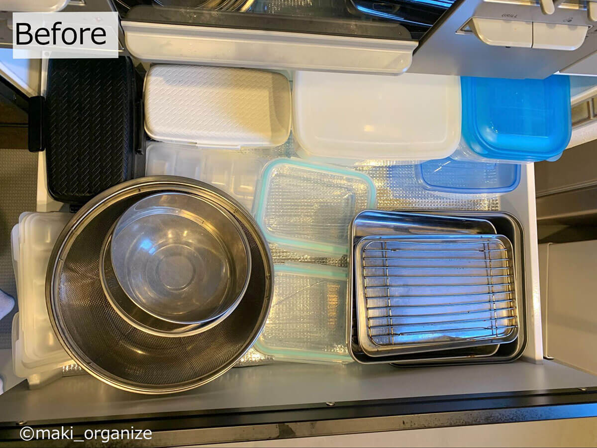 (Before)ボウルとオイルパットは、タテ入れ場所へ移動(C)maki_organize