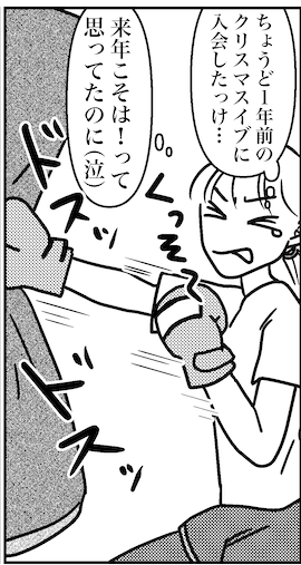 サイゾーウーマンカルチャーマンガ今年もクリぼっち? 1年前は…… カルチャー まんが『オバサンと言われても結婚したい!』345話 【アラフォー婚活ルポ】今年もクリぼっち? 1年前のクリスマスイブは…… 2024/12/08 13:30 白戸ミフル(マンガ家) オバサンと言われても結婚したい! 来年こそは! って思ってたのに 次のページ クリぼっちを乗り越えた 前のページ123次のページ 関連記事 【アラフォー婚活ルポ】25歳男子と朝まで……ヤッてもうた【アラフォー婚活ルポ】結局、独身は仲間はずれかい【アラフォー婚活ルポ】「旦那に後ろめたいというか……」友人の言葉にびっくり【アラフォー婚活ルポ】結婚してなくても、楽しいこといっぱいあるから【アラフォー婚活ルポ】お見合い後、初めて自分からお断りしたワケ その他の作品を読む