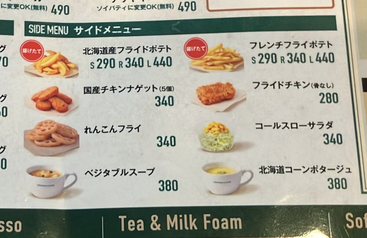店内のメニューには「フレンチフライポテト」もあります。どちらも「揚げたて」を強調していますね。