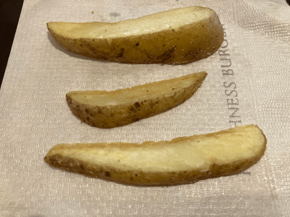 ポテトの一つひとつのサイズや厚みは結構バラバラで、じゃがいもを丸々一つ端から端までカットしていることが伝わります。