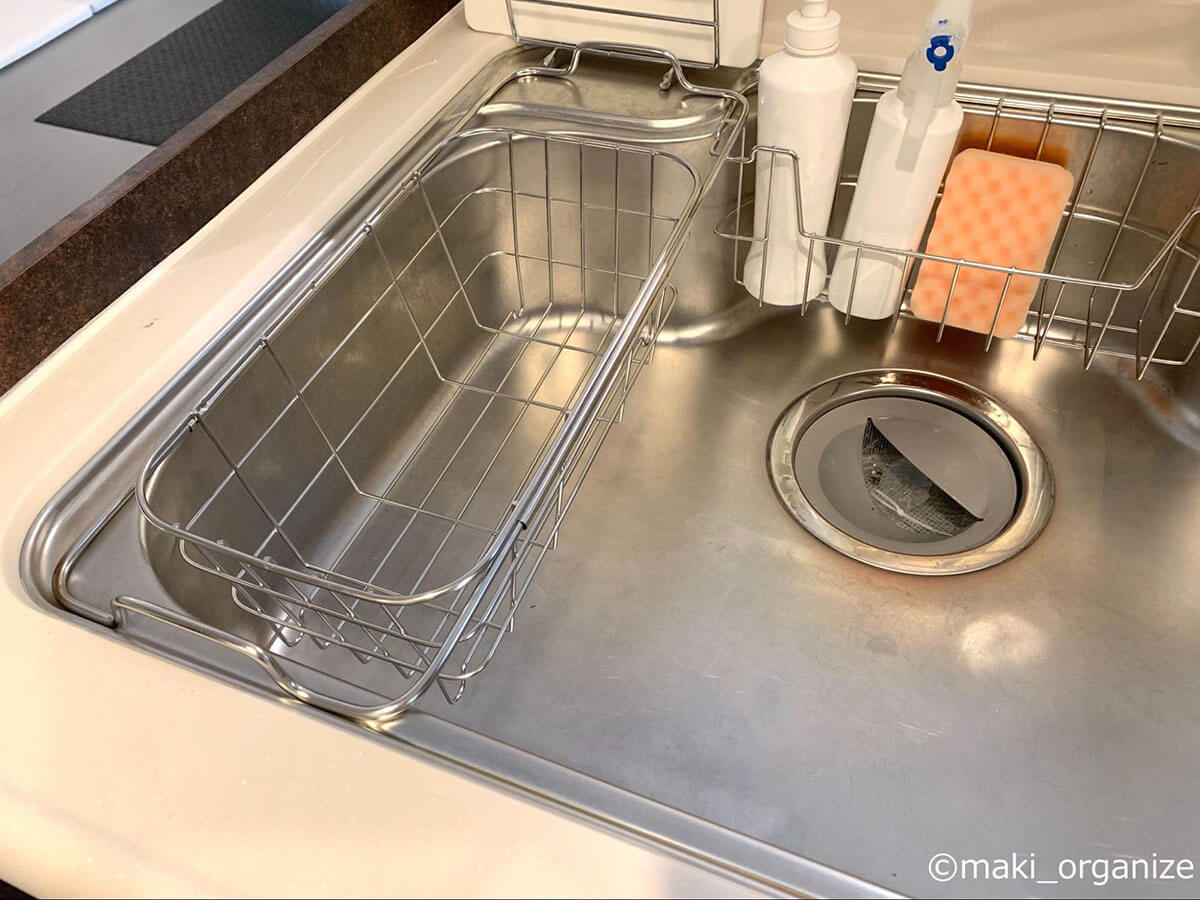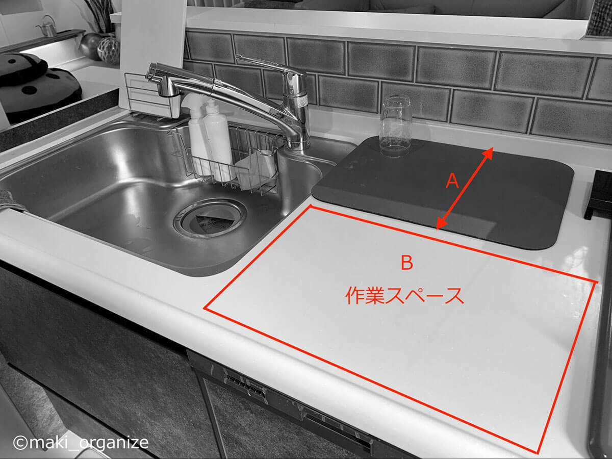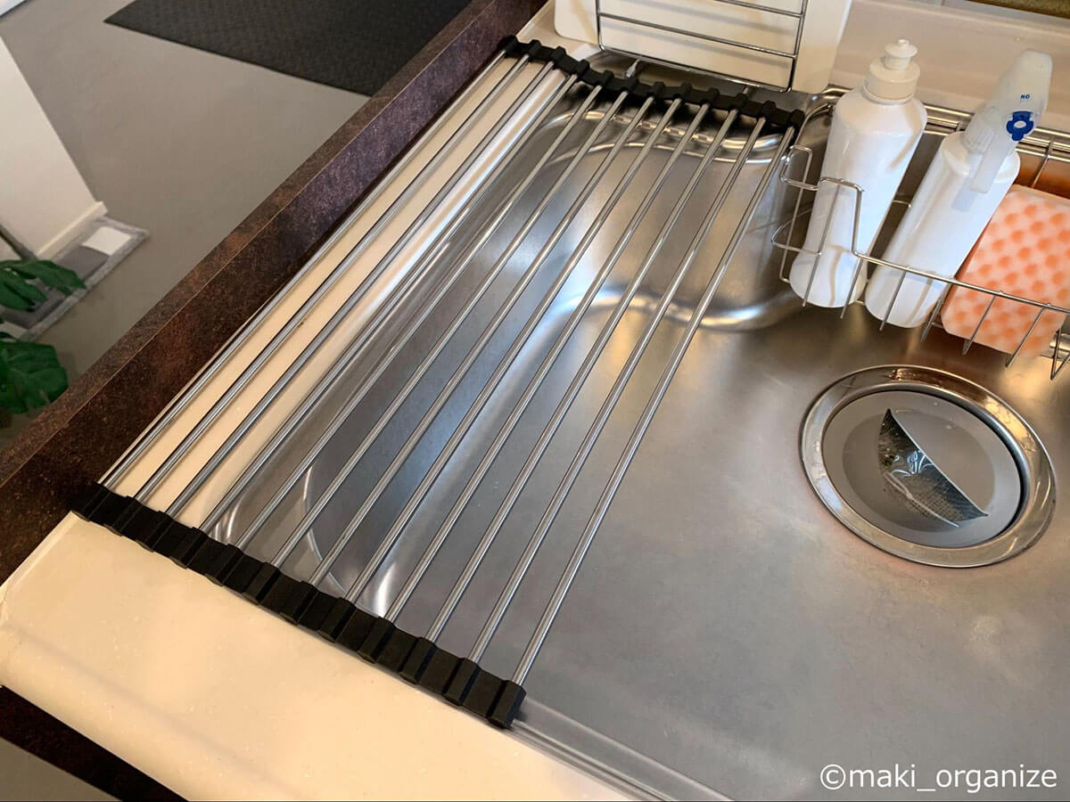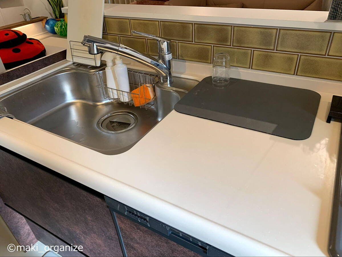 サイゾーウーマン暮らし住まい【キッチン】作業スペースを増やす方法 暮らし [連載]女たちの「煩悩部屋」ビフォーアフター キッチンの作業スペース増やすなら「550円のコレ」! プロが教える、ダイソーより優秀な一品は? 2025/01/08 17:00 伊藤まき(収納ライター) 「汚部屋」ビフォーアフター 整理収納アドバイザーの伊藤まきさんが、片付けに悩む読者の自宅を使いやすく生まれ変わらせる連載シリーズ【「煩悩部屋」ビフォーアフター】。 連載企画『ビフォーアフター』新シーズンです。第10回目の片付けモニターは、東京都世田谷区・1SLDKで暮らす3人家族のまいさん(32歳)。今回は、汚部屋の片付けではなく「リノベマンション」の収納を手直しする特別編です。 目次 ・【お悩み】キッチンの作業スペースが狭くて使いにくい ・【ポイント】作業スペースが広いほど家事が楽に! ・【解決案】折りたたみ式の水切りを「作業台の反対側」に置く ・【ダイソー】折りたためる水切り ・【スタンダードプロダクツ】ステンレス水切りラック ・【スタンダードプロダクツ】ステンレス水切り 伸縮型 ・【まとめ】作業スペースを増やすには「反対側」に水切りを設置! 【お悩み】キッチンの作業スペースが狭くて使いにくい 作業台の上に「水切り」があると置きっ放しになりがち(C)maki_organize クライアントプロフィール ・まいさん(32歳) ・保育園の園長先生(フルワーク) ・育児系インフルエンサー“まい先生“としても活躍 ・3人家族 ・1SLDK ・中古マンションをリノベーション購入(持ち家) ・東京都世田谷区在住 収納に関する要望 ・掃除や片付けの頻度を少なくしたい ・子どもが自分で身支度できる仕組みを作りたい ・ベッドルームのレイアウトを変えたい ・シンプルに暮らしたいので、家具を増やしたくない キッチンの作業スペースが「シンクの横だけ」なので、狭くて使いにくいというお悩みはありませんか? そこで今回はシンク内に水切りを設置して「作業スペースを増やす」方法をご紹介します。 作業スペースが広いほど家事が楽に! 水切りマットは水切れがやや遅い(C)maki_organize シンク横に写真のような「水切りマット(A)」を置きっ放しにすると「作業スペース(B)」が半分になります。水切りマットは省スペースで済むというメリットがある一方、洗った食器が乾くまで置きっ放しにしがちというデメリットも。 こまめに食器を拭いて、片付けながら調理をするのが面倒だと思う方は、マットではなく金属製の水切りを活用するのがおすすめです。 【解決案】折りたたみ式の水切りを「作業台の反対側」に置く キッチンのシンクを覆うサイズを選ぶと◎(C)maki_organize キッチンの作業スペースの反対側に「折りたたみ式の水切り」を配置します。とても有名でシンプルな方法ですが「サイズ選びで失敗しやすい」という点も。そこで次からは、ダイソー(小)とスタンダードプロダクツ(大)を比較して、サイズ感の違いを紹介していきます。 【ダイソー】折りたためる水切り 330円(税込) JANコード:4550480025735(C)maki_organize ダイソー「折りたためる水切り」330円(税込)です。THREEPPY(スリーピー)や3COINS(スリーコインズ)にも同じ価格で、同じようなサイズ(D47cm)の商品があります。 シンクより小さいと使いにくいので注意! 商品サイズ:W23.5×D47cm(シンクはD50cm)(C)maki_organize シンクのサイズより小さめなので、重めの調理鍋を載せるとズレたり落下する心配が出ます。シンクの凹部分を覆うサイズが良いので、ご自宅のシンクのサイズを測ってから選ぶようにしましょう。 くるくる丸めてたたむ「ロールタイプ」 水滴がそのままシンクに落ちるのも利点(C)maki_organize 使わない時は、くるくるっと左側へ巻いて片づけることができます。食器はもちろん、洗った野菜の水切りに使ってもOK。ただし、シリコン部分の凹凸が多いためカビが出やすいという欠点も……。使用する場合はこまめに乾燥させるようにしましょう。 【スタンダードプロダクツ】ステンレス水切りラック 550円(税込) JANコード:4550480245034(C)maki_organize スタンダードプロダクツ「ステンレス水切りラック」550円(税込)です。ダイソーに比べると、ひとまわり大きくステンレスの棒も太くて頑丈! 今回のテーマでは、これが「正解の商品」です◎ シンクより大きめなので使いやすい! 商品サイズ:W30.3×53.3cm(シンクはD50cm)(C)maki_organize シンクのサイズ(D50cm)を覆う大きさ(D53.3cm)なので、とても安定感があります。シリコン部分も凹凸が少なくてフラット。凸凹が多いタイプに比べると、カビも出にくいと思います。 二つ折りに「たたむタイプ」 食器が乾くまで、置きっ放しできるのが楽!(C)maki_organize 二つ折りにたたんでコンパクトにすることもできます。頑丈さ、デザイン、使用感すべて優れているので、まいさん宅ではこちらを使うことにしました。シンクの右側で調理しながら、調理道具や野菜などの「洗い物」を左側へ置くことができます。 【スタンダードプロダクツ】ステンレス水切